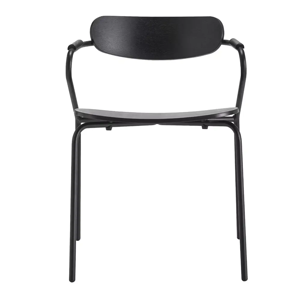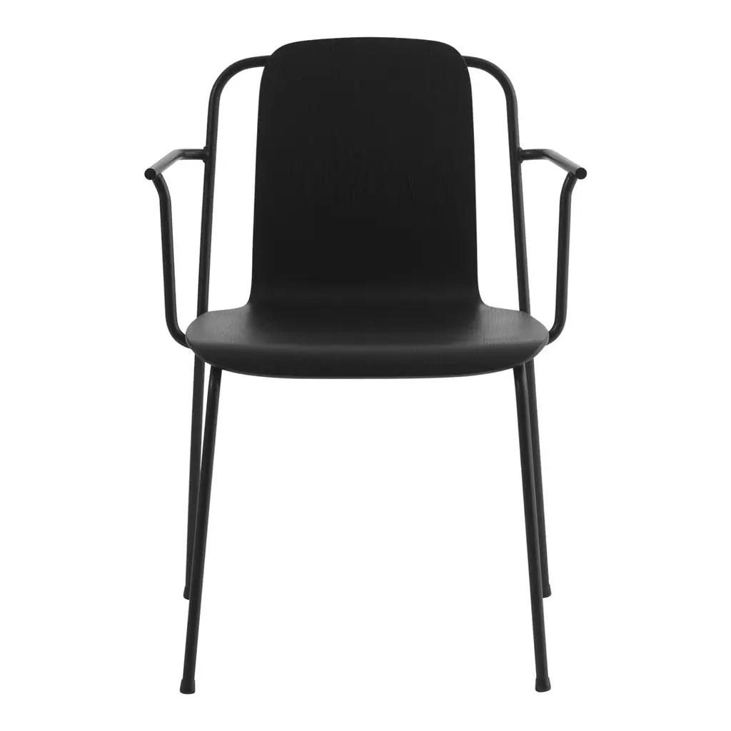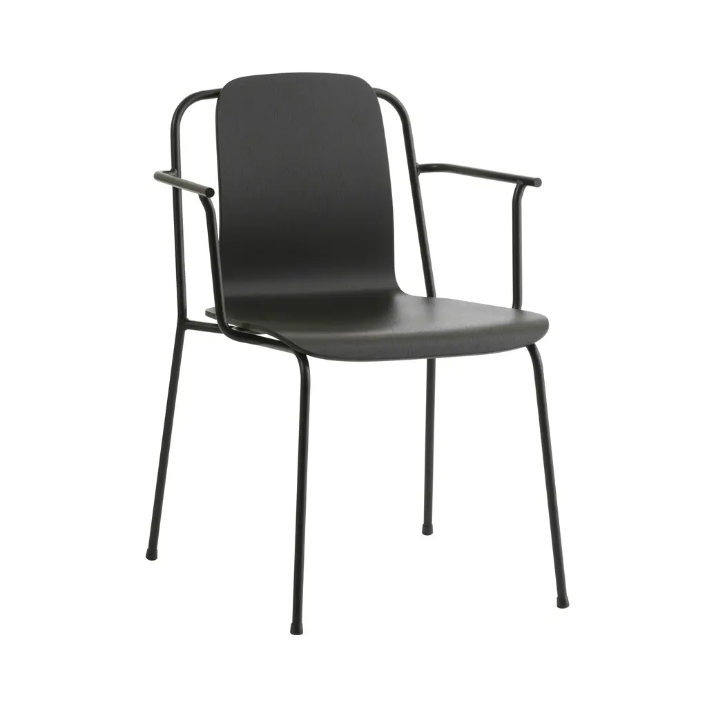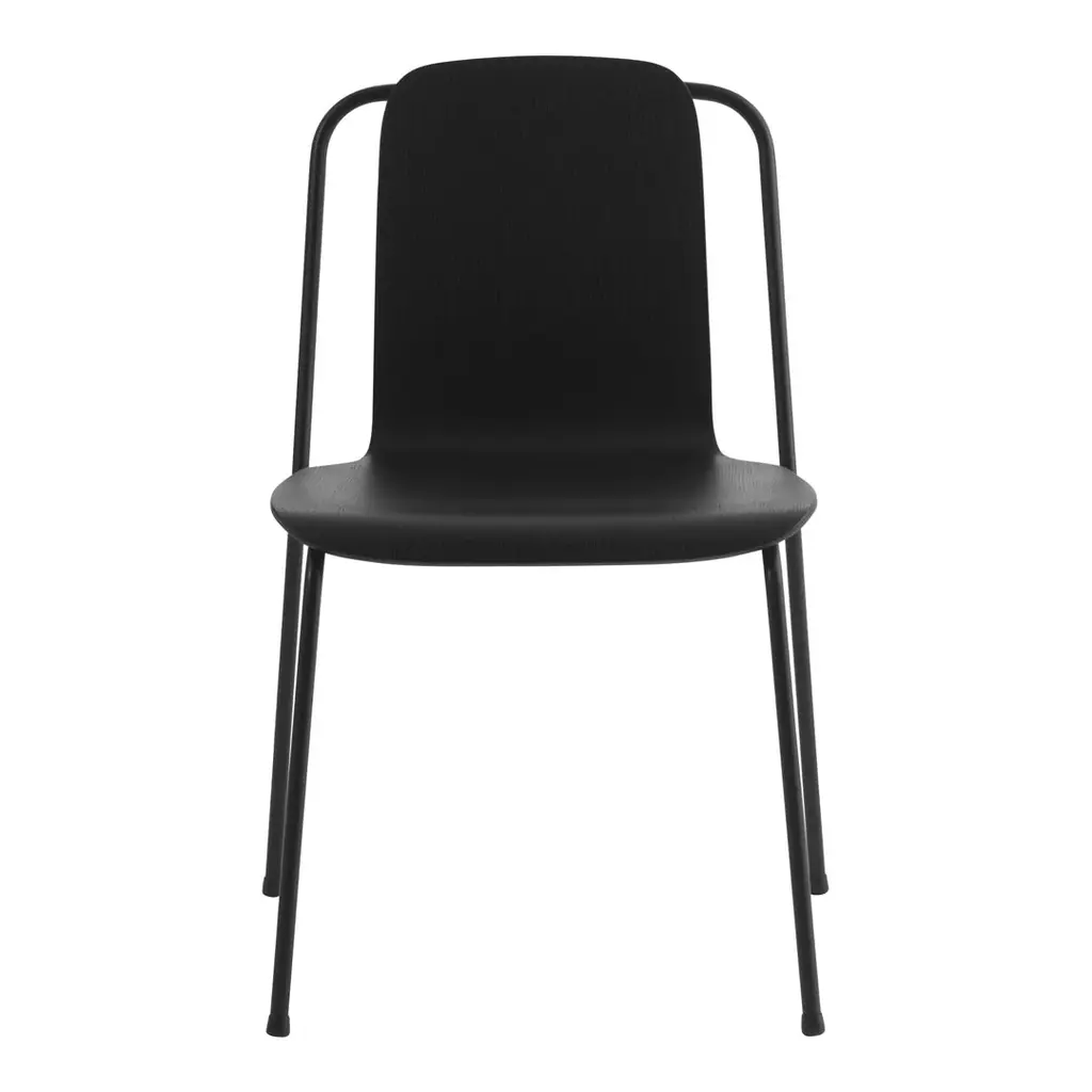 The Studio chair by Normann Copenhagen truly embodies the stripped-down style of its designer, Simon Legald. The chair has an almost industrial feel with its slender steel frame and refined seat and back molded of oak veneer. The back of the Studio chair has been slightly lifted from the steel frame, highlighting the bare and simple design and giving it an additional touch of airiness. The Studio chair is stackable, making it a practical choice for homes as well as bar or restaurant use.