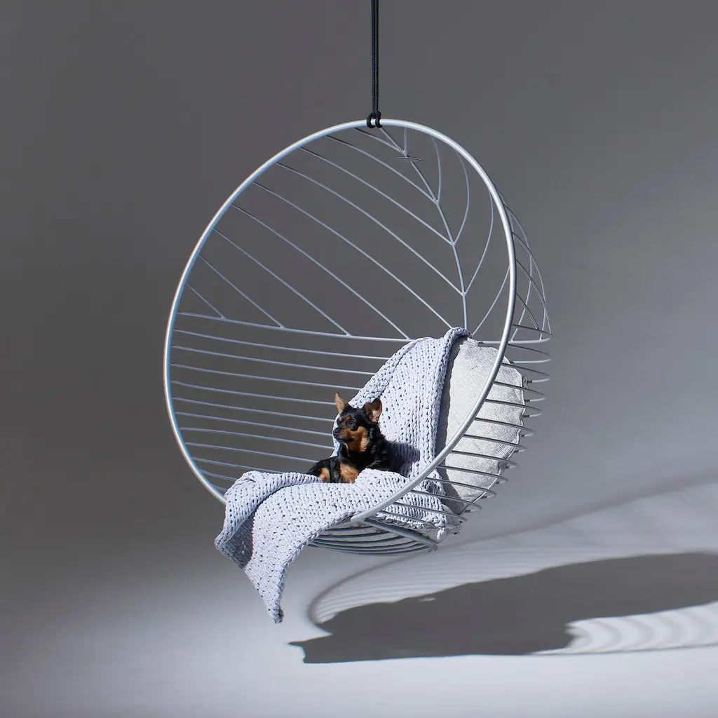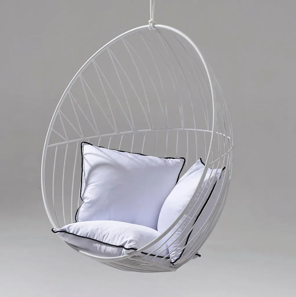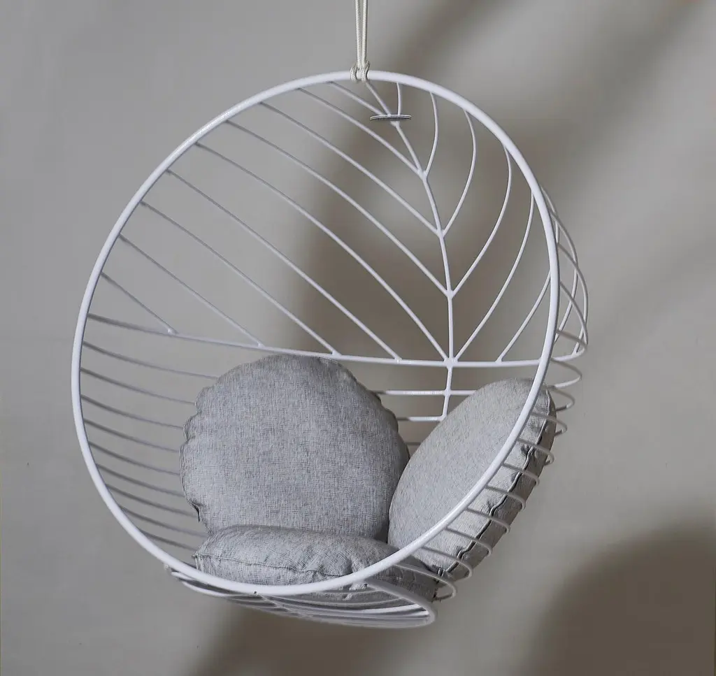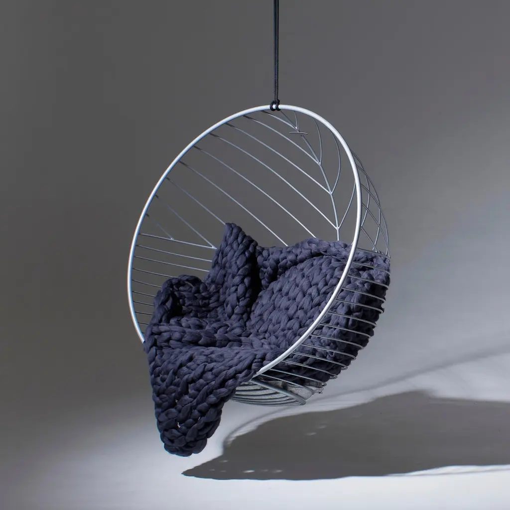 The Bubble hanging swing chairs’ round shape creates a cozy feel.The is available in modern patterns that are striking in its visual appeal.The chair has been designed to be very comfortable and relaxing. Ideal for ‘chilling’ in, reading a book or just hanging out.Each one is made by hand, and the core frame is standard to ensure consistency in shape and comfort.They are ideal for inside or outside use and look gorgeous on a deck, patio, hanging from a branch of a tree or anywhere indoors.Some of the finishes that can be chosen is Ferrugrain black or Ferrugrain white (that has a sensual feel that is soft and suede like to the touch) – and they also look gorgeous in red, different shades grey or greens. For the more adventurous pink, blue or bright green can be ordered.Dimensions - Size: 1230 x 1230 x 600 mm (1230 diameter)49 x 49 x 24 in.Chair information:These chairs are made from mild steel and are very durable.They are E coated - Environ Protected (like they do on the chassis of a car) for rust resistance.They are also powder coated.The hanging mechanisms are supplied with chair - in standard lengths, ready for installation.Standard colours are black, white, greys, red, green and many more on request.