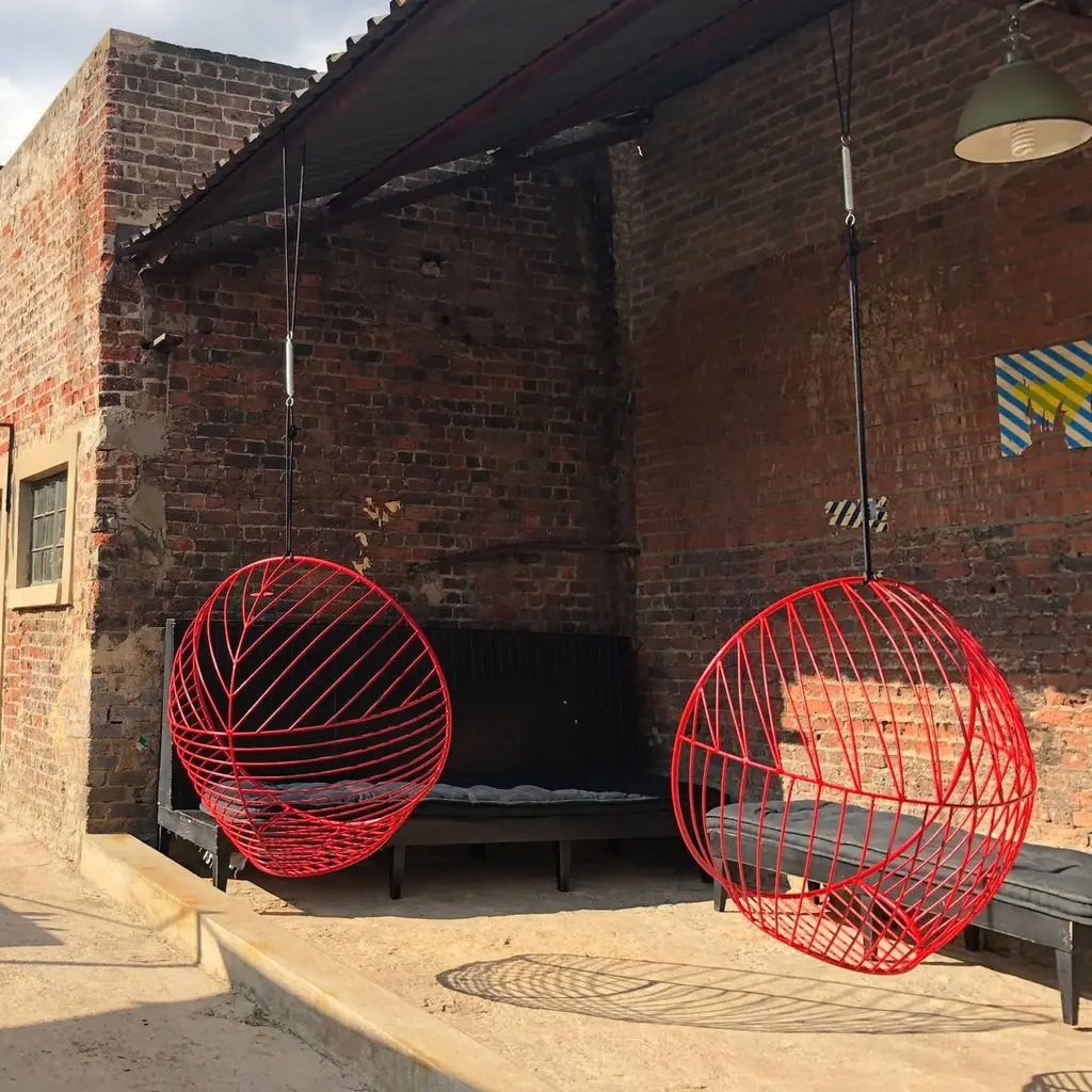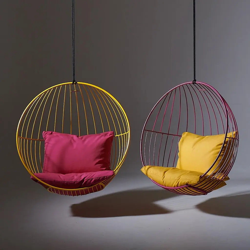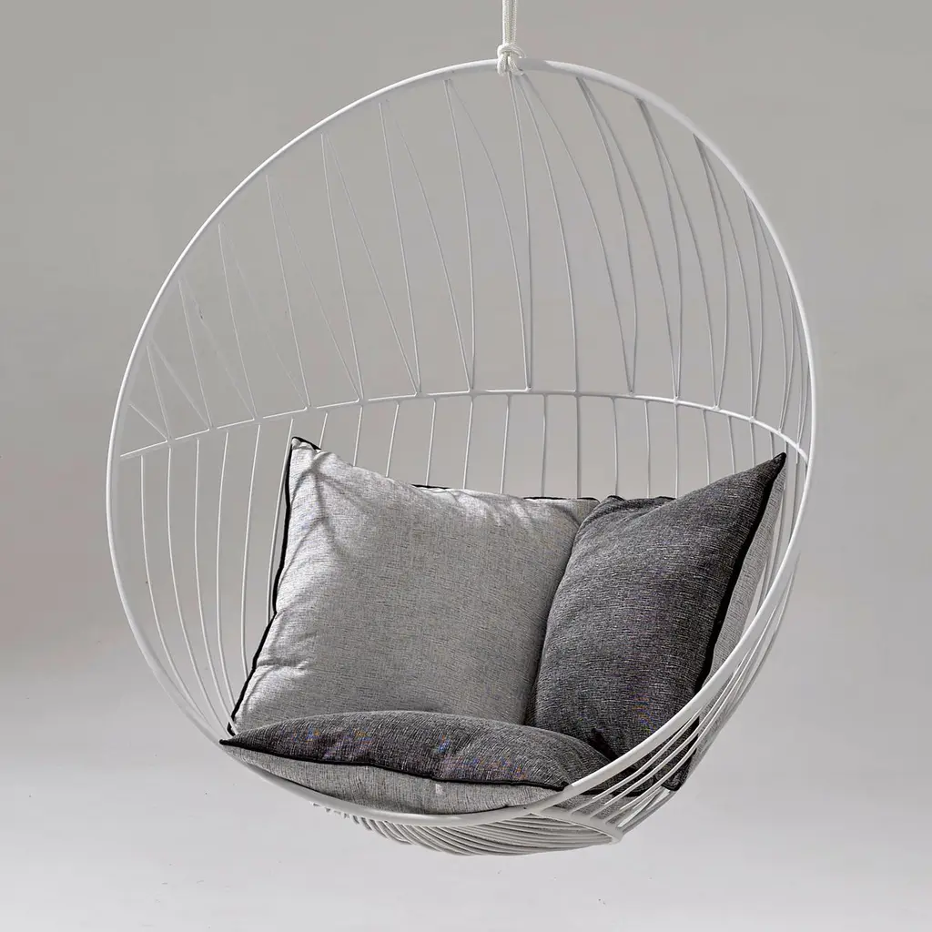 The Bubble hanging swing chairs’ round shape creates a cozy feel.The is available in modern patterns that are striking in its visual appeal.The chair has been designed to be very comfortable and relaxing. Ideal for ‘chilling’ in, reading a book or just hanging out.Each one is made by hand, and the core frame is standard to ensure consistency in shape and comfort.They are ideal for inside or outside use and look gorgeous on a deck, patio, hanging from a branch of a tree or anywhere indoors.Some of the finishes that can be chosen is Ferrugrain black or Ferrugrain white (that has a sensual feel that is soft and suede like to the touch) – and they also look gorgeous in red, different shades grey or greens. For the more adventurous pink, blue or bright green can be ordered.Dimensions - Size: 1230 x 1230 x 600 mm (1230 diameter)49 x 49 x 24 in.Chair information:These chairs are made from mild steel and are very durable.They are E coated - Environ Protected (like they do on the chassis of a car) for rust resistance.They are also powder coated.The hanging mechanisms are supplied with chair - in standard lengths, ready for installation.Standard colours are black, white, greys, red, green and many more on request.