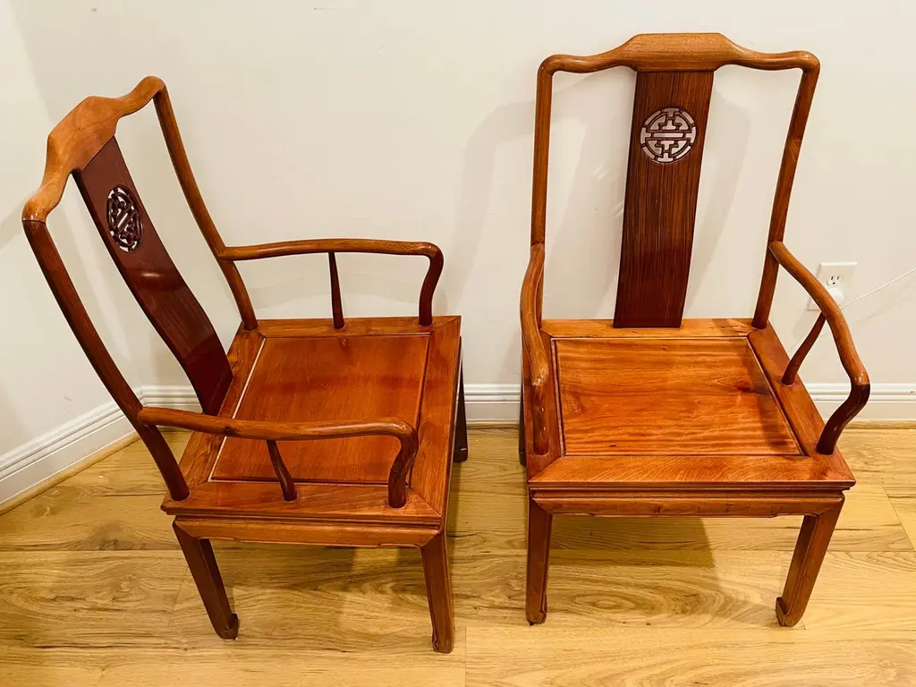 Superb Pair Chinese Teak Wood Carved Horseback Chairs