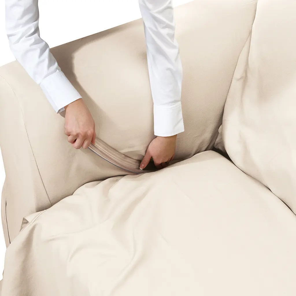 Grips that keep slipcovers locked in place! Easy as 1-2-3 to install. For relaxed fit slipcovers, stretch fit slipcovers & furniture covers. Safe for all types of furniture including leather. Gives any slipcover a custom-made look and tailored fit Patented system that installs in minutes.