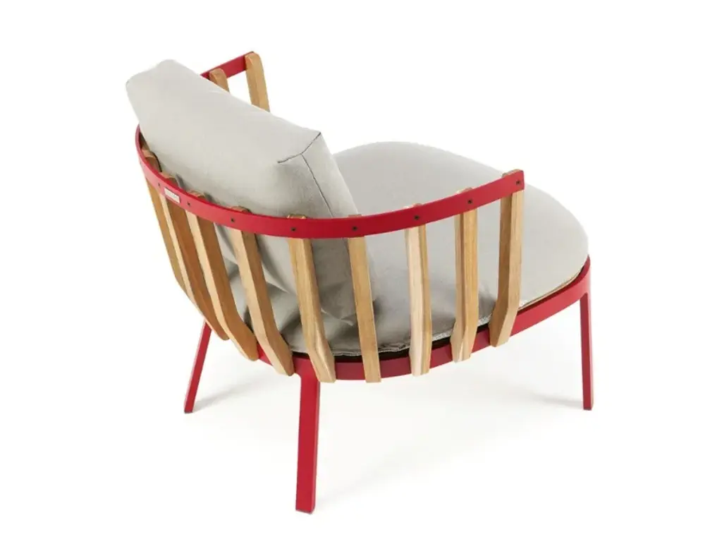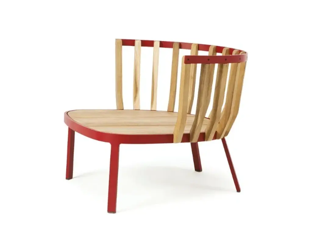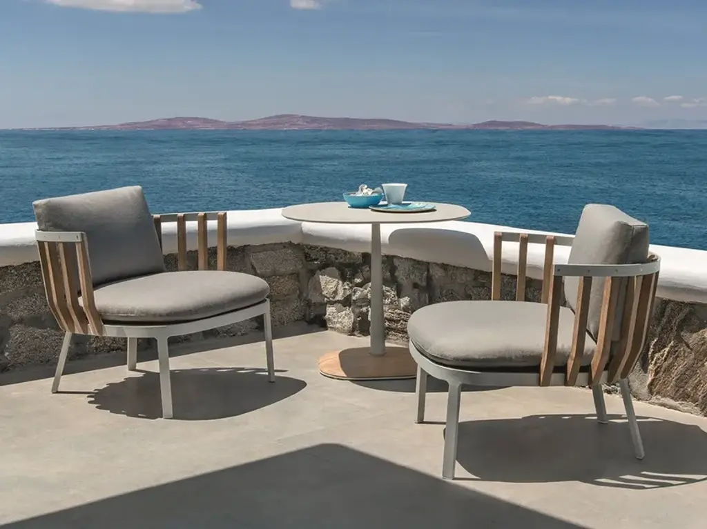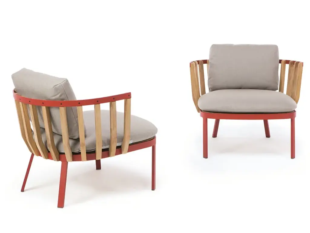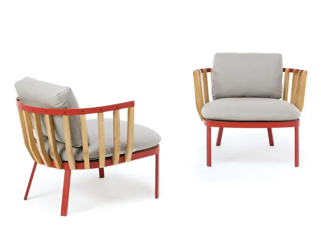 Ethimo presents two new pieces, designed by Patrick Norguet, that fit perfectly into the Swing collection: a small armchair and a high stool. Defined by an architectural interplay in teak, these contemporary pieces will bring modernity and elegance to any type of design.The narrower armchair is set to complement the already existing lounge chair and will sit comfortably in relaxation areas: in the garden, by the sea, in the countryside and even in an indoor lounge.The partnership between Patrick Norguet and Ethimo has resulted in Swing, a lounge collection characterised by a dual structure: an external metal one and an internal one using pickled teak slats, like a nest cocooning the body and mind.
