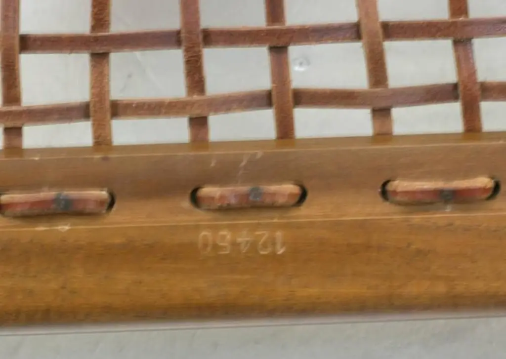 Classically elegant and beautifully proportioned T. H. Robsjohn-Gibbings Klismos chairs with original woven leather strap seats, 1960s, produced by Saridis of Athens. Three available in this size. Excellent condition.Other sizes available.