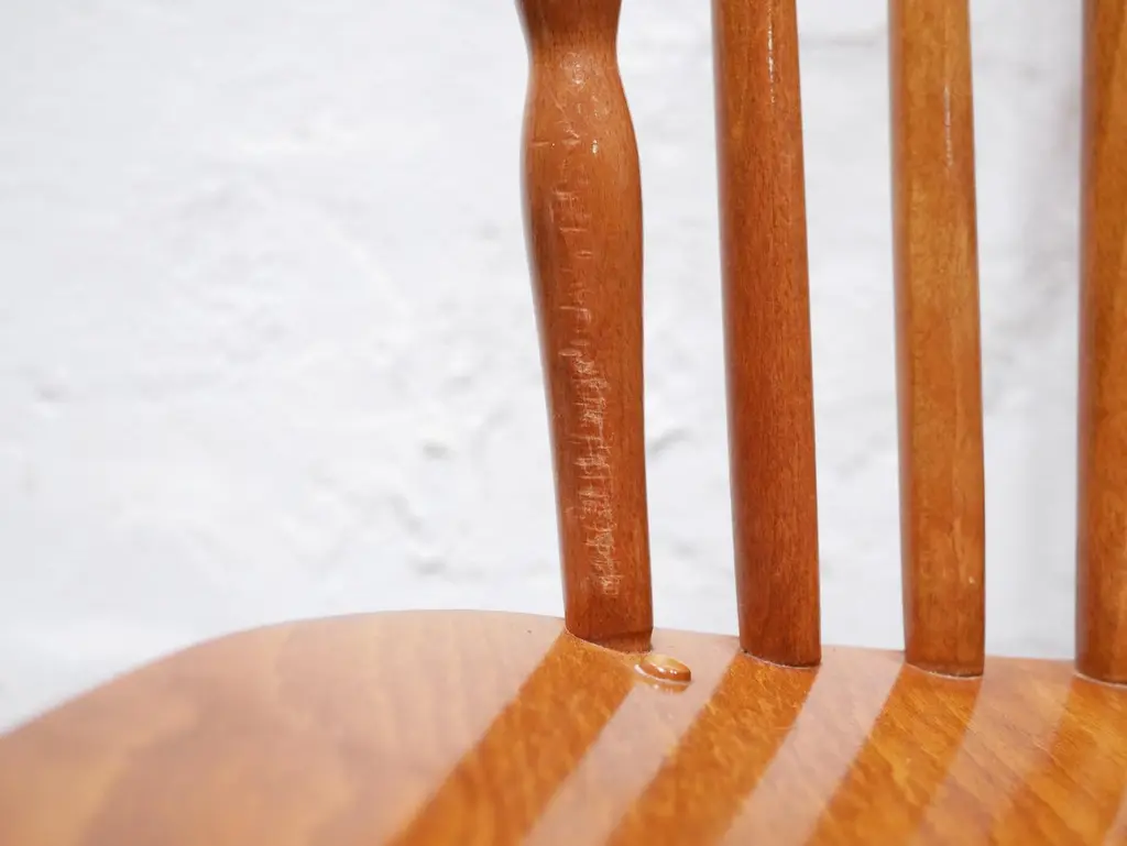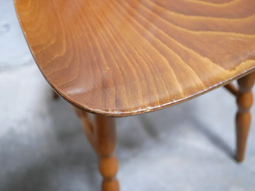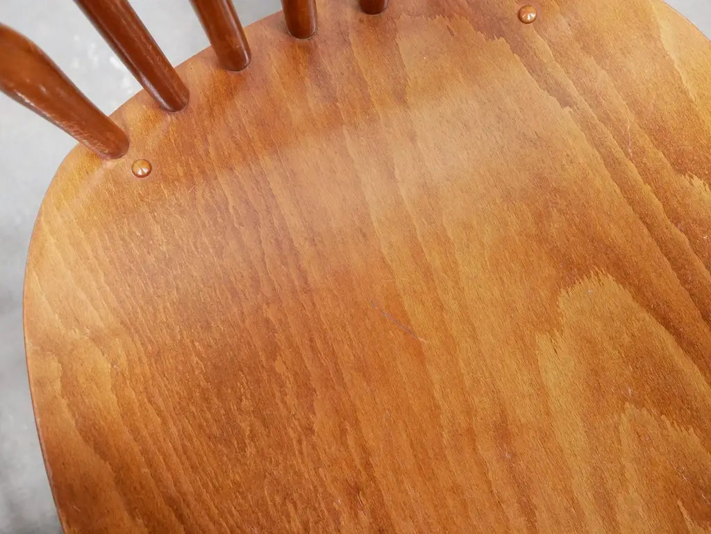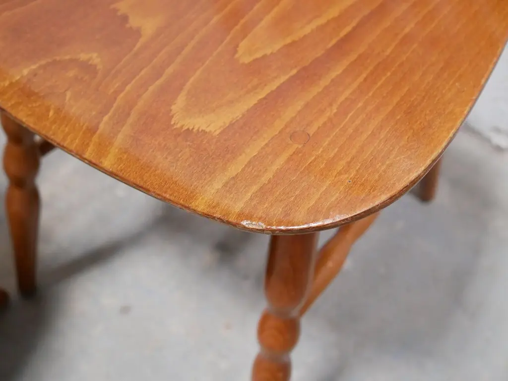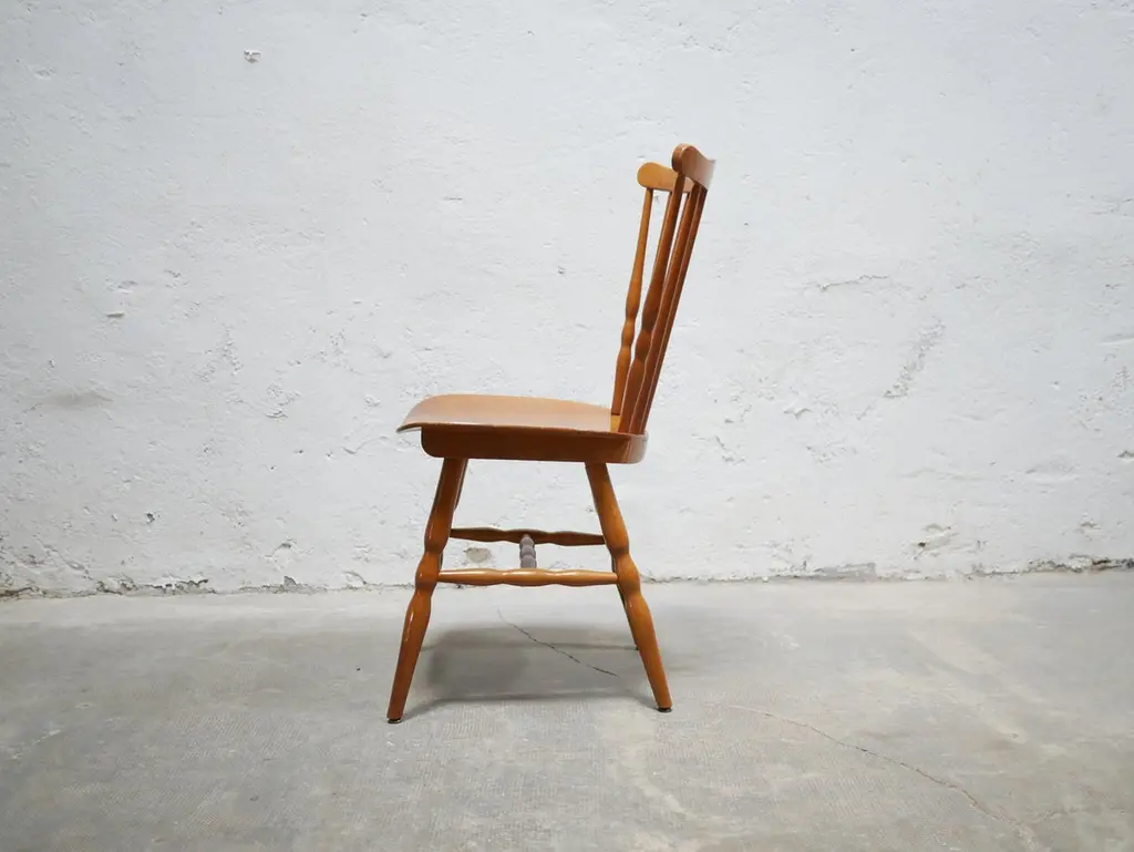 "Tacoma" or "Florida" model chair produced by Baumann in the 1960s.Its Scandinavian lines and timeless design give this chair a lot of elegance and character. The Baumann chair is a must in vintage furniture.Intense and luminous tint. The grain of the wood is sublime.Good condition, some marks of time, in particular scratches on the seat and imperfections, but the chair retains all its solidity, authenticity and charm.Dimensions:Height 86cm x Seat height 43.5cm x Width 41cm x Depth 51.5cm.