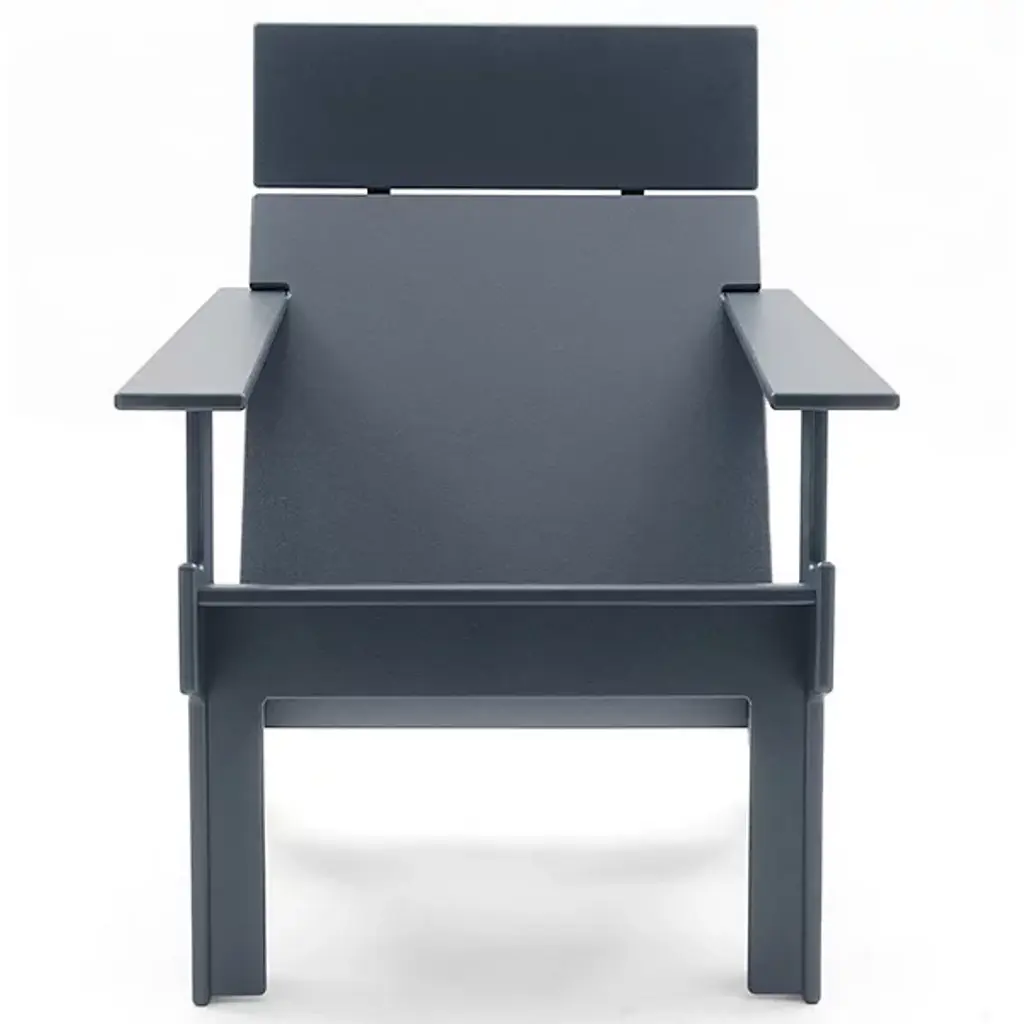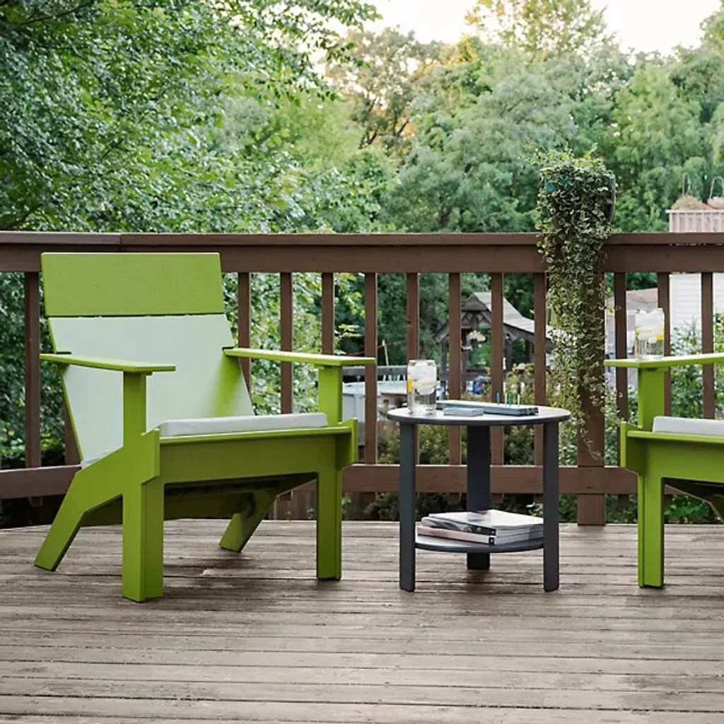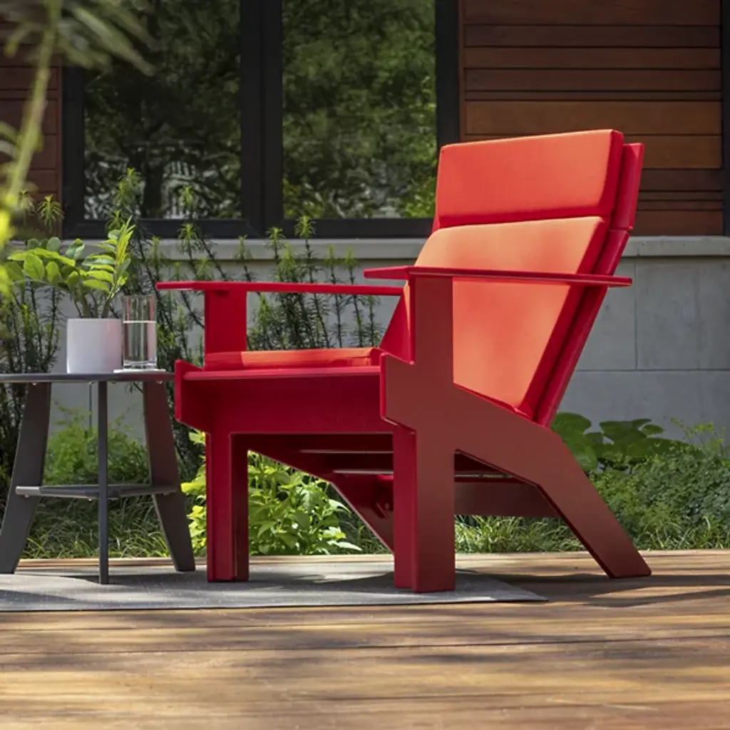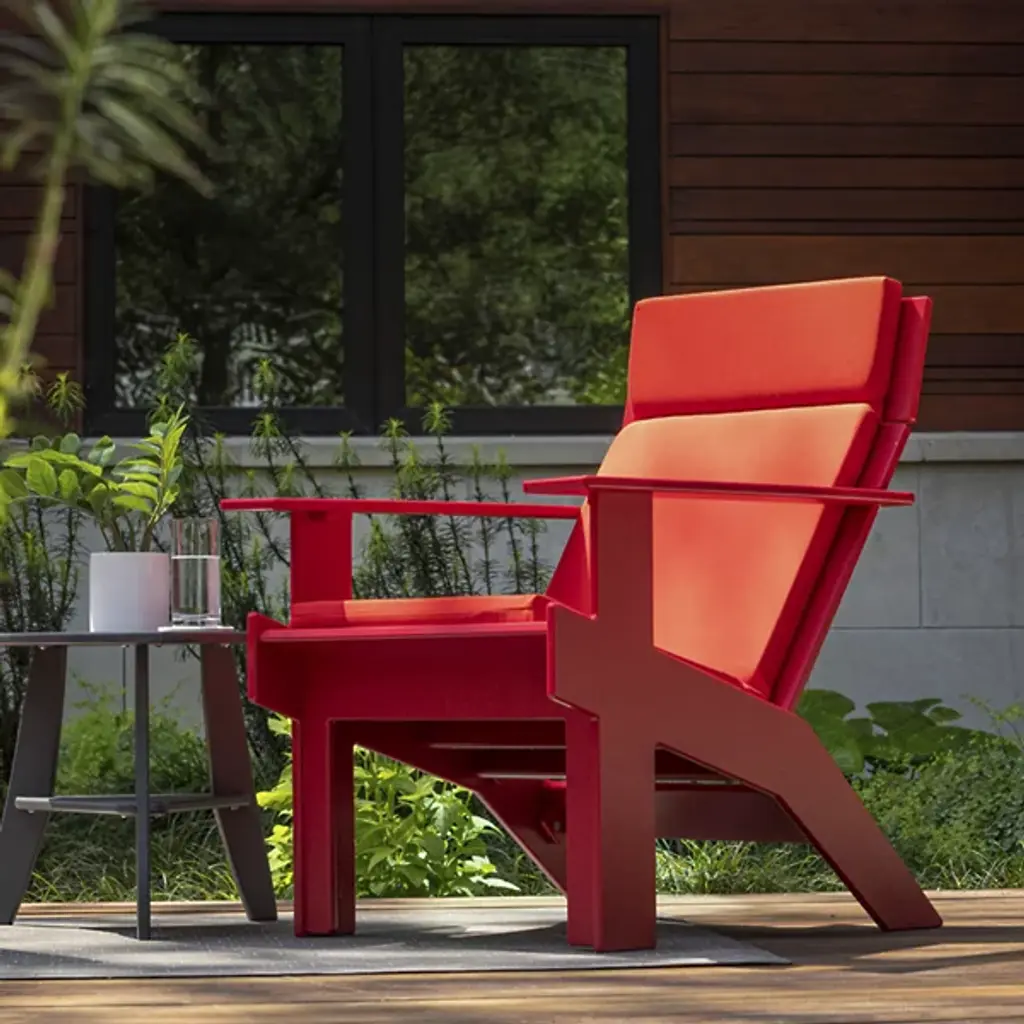 The Tall Lollygagger Outdoor Lounge Chair by Loll Designs is an outdoor piece of furniture composed of durable, easy-to-clean, and recycled high-density polyethylene that is primarily sourced from milk jugs.This chair features taller legs that add about four inches of seat height to the classic Lollygagger Lounge Chair and has two back planes – one set lower and the other at shoulder height create a comfortable spot to sink into. Hidden under the right arm is an integrated bottle opener, allowing you to sit back and relax for as long as you’d like. As part of the Lollygagger collection, one percent of gross sales are donated annually to charitable groups.