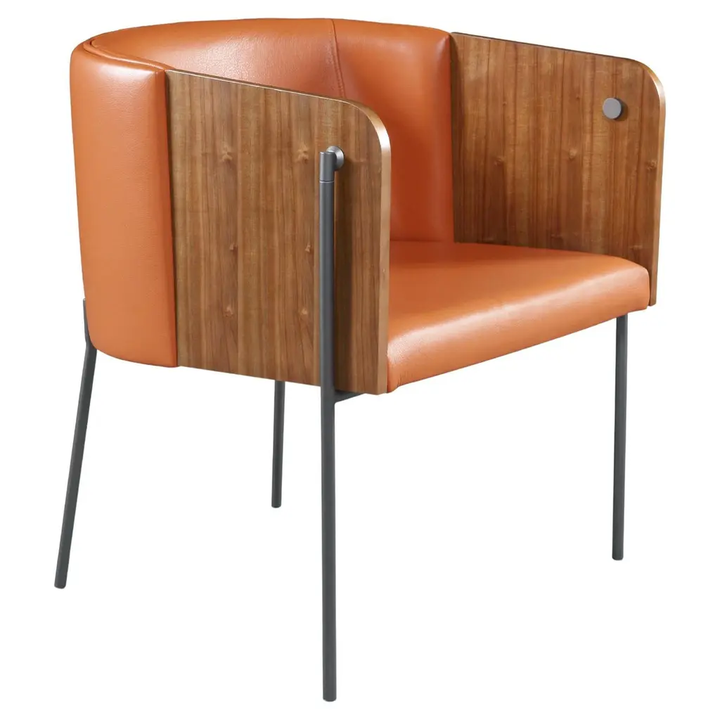 A sculptural objet d'art that functions as an indoor armchair, this splendid piece boasts a refined combination of materials. A showcase of masterful craftsmanship, the 44cm-high seat is fashioned of bent aluminum and is composed of four parts screwed together with circular disks. The cushion and seat are upholstered of fine brown full-grain leather with Velcro closure. Boasting a matte, smooth finish, this armchair is customizable in a wide range of colors.