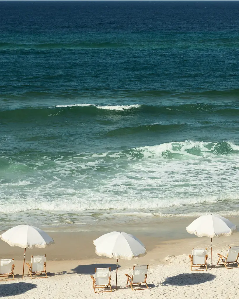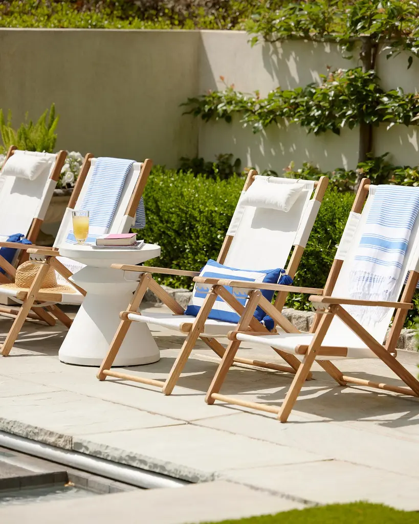 Endless summer. Classic white or colorful stripes. Constructed of premium teak.