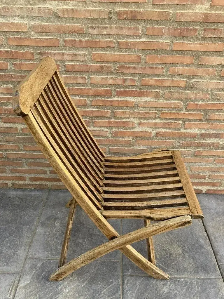 Teak Folding Deck Chair With Slat Back From Scan Com, 1960s