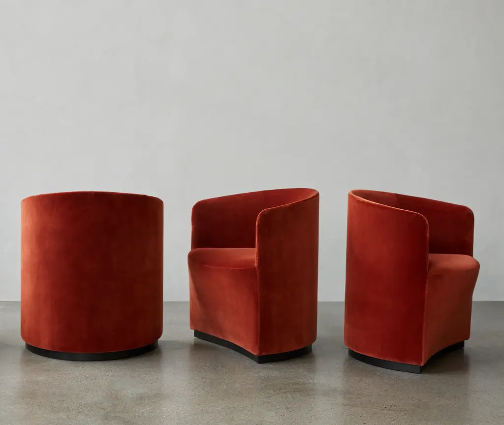 Pairing the luxurious feel of full upholstery with a clean silhouette rooted in geometric forms, the Tearoom Series is as appealing to the touch as it is easy on the eyes. While creating the clean silhouette, Ross took exceptional care to imbue every inch with mood-lifting comfort. Every design element curves gently to ensure that the furniture’s contours complement our own. Beneath the upholstery, a wood and foam construction creates the ideal pairing of sturdiness and lush comfort. What is a lounge design, after all, if it doesn’t deliver on the experience you imagine when you get drawn into its sculptural form from afar? Timeless in its expression and execution, the Tearoom Series is well-suited to both period and contemporary environments. Their embracing form, while alluring, stops short of being overly casual. As such, the furniture maintains a clear visual connection to the sculptural 1904 Willow Chair that originally sparked the designer’s imagination.