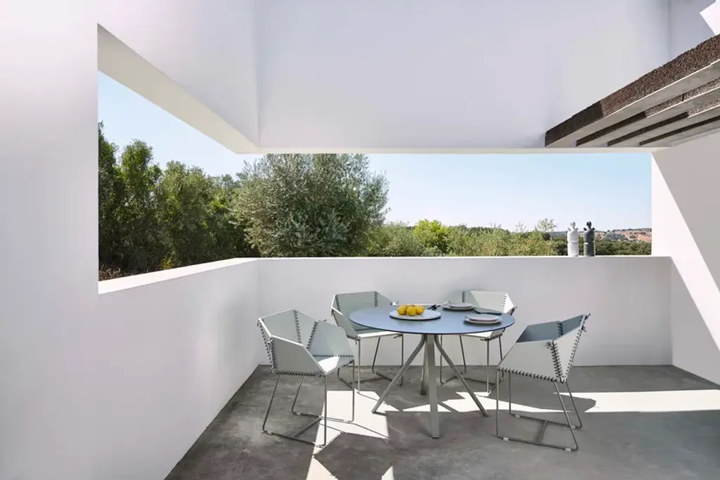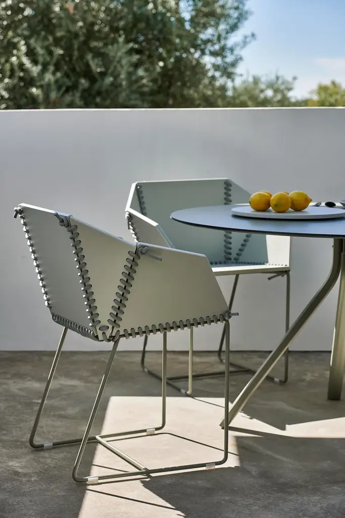 “This collection draws its inspiration from fashion; the concepts and techniques used in textiles have been carried over into the world of furniture. The way items in the collection are put together uses a system that simulates how seams are stitched in clothes. This enables us to obtain an item with great flexibility that adapts to everyone, the same way as a fashion garment. The stitching in the chair makes it perfectly ergonomic, providing comfort and giving the design its own individual character.”Made of 100% recyclable polyethylene and powder coated galvanized steel. The braided rope is high tenacity polyester. Collections colour sample: white, agate grey, cement grey, sand, bronze, wine red, blue grey, grey blue, anthracite and black.Braided colour rope: white, sand, grey, burgundy, blue, navy, brown and black.
