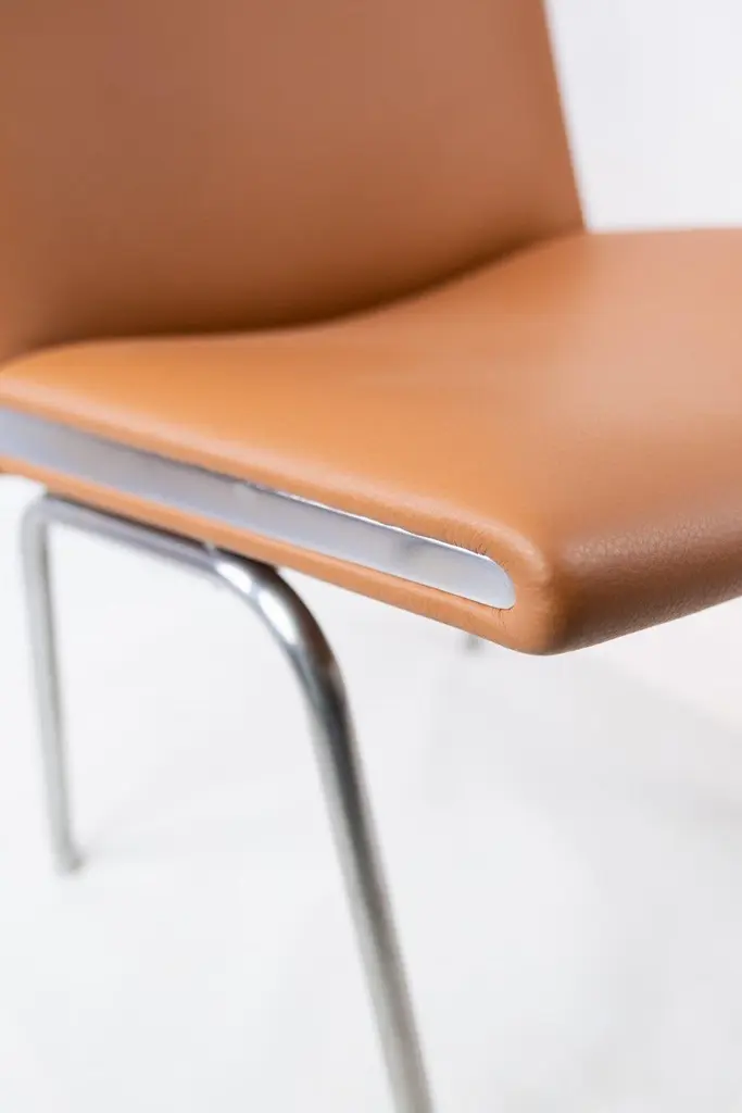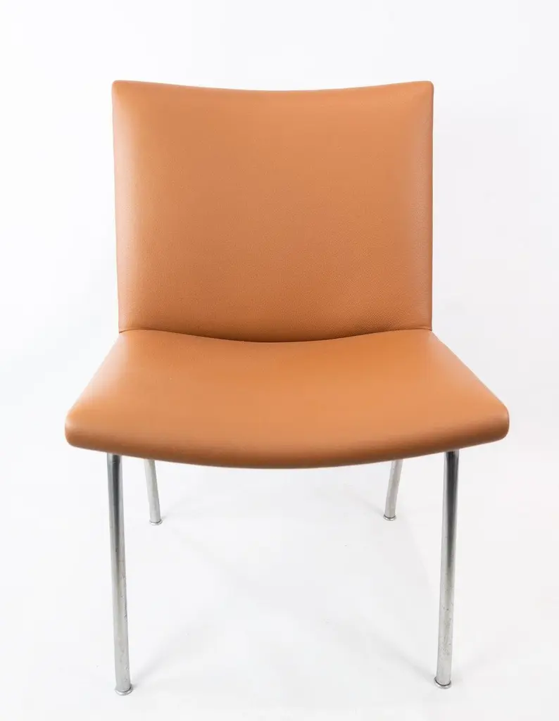 The Airport Chair, model AP37, is a quintessential example of Hans J. Wegner's iconic design prowess, exuding elegance and comfort in equal measure. Crafted in the 1950s by AP Stolen, this masterpiece of Scandinavian design showcases Wegner's impeccable attention to detail and craftsmanship.Upholstered in luxurious cognac-colored classic leather, each chair epitomizes timeless sophistication and refinement. With its sleek lines and ergonomic design, the Airport Chair offers unparalleled comfort, making it the perfect addition to any modern interior.Despite its age, these chairs are in great vintage condition, a testament to their enduring quality and enduring appeal. With four pieces available in stock, you have the opportunity to bring home a piece of design history and elevate your living space with the timeless elegance of Hans J. Wegner's iconic creation.