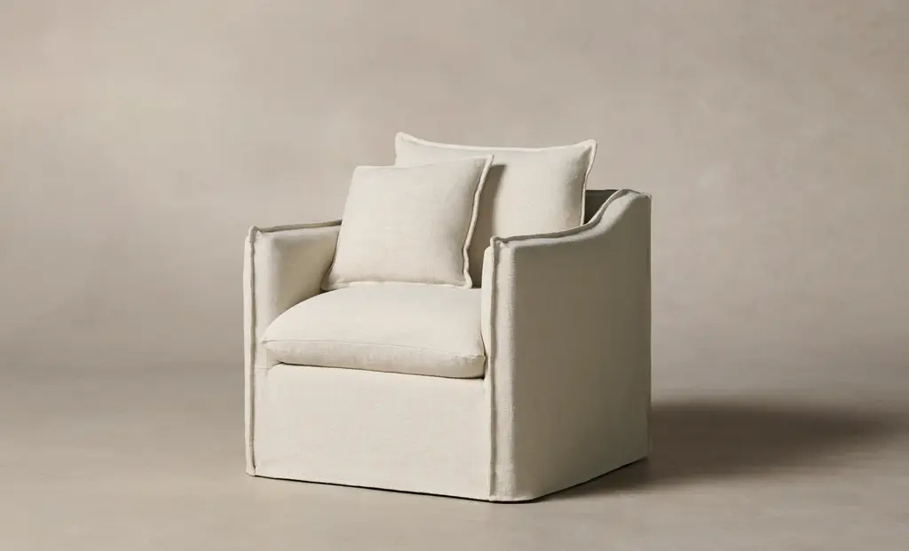 The Dune Chair is a vision of effortlessness and ease. It boasts a deep seat, plush cushioning, and relaxed slipcover with hand-sewn flange seams for an elegant finish. Handcrafted in North Carolina.