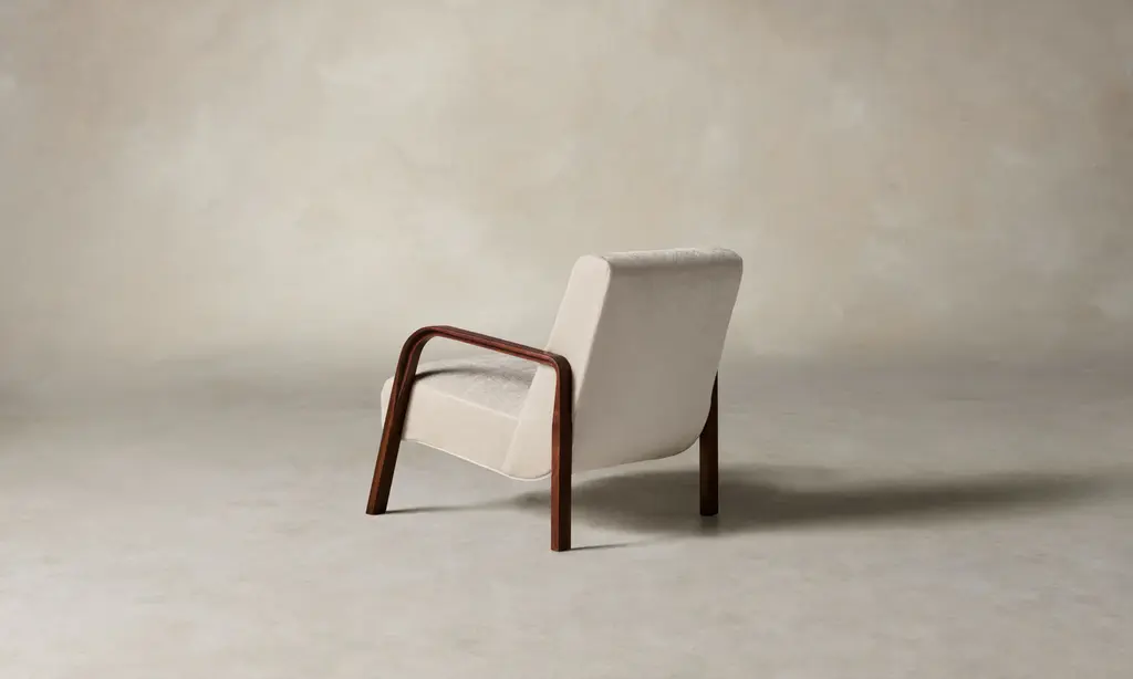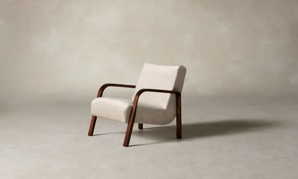 The Felix Chair is an expression of the mid-century modernist belief that beauty lies within clean, unadorned design. Its slender bentwood arms flow continuously into the legs, and a masterfully upholstered seat rests weightlessly between them. Handcrafted in North Carolina.