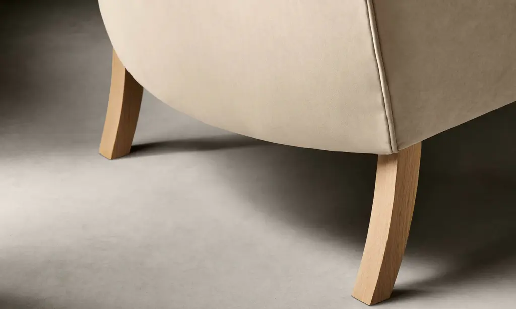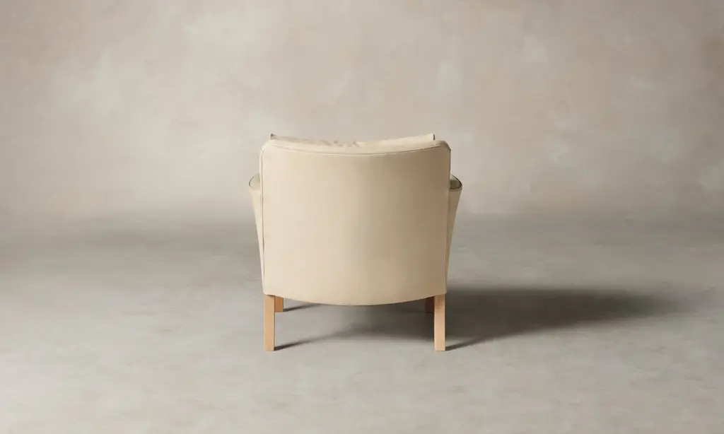 The Kaye Chair pays homage to mid-century Danish design with its simple form. Gently curved along the back and arms, it envelops the body in masterful upholstery and generous cushioning. Slender white oak legs lend the design a classic appeal. Handcrafted in North Carolina.