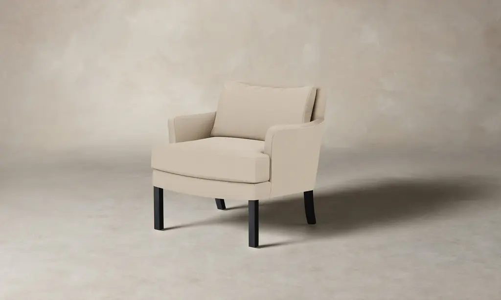 The Kaye Chair pays homage to mid-century Danish design with its simple form. Gently curved along the back and arms, it envelops the body in masterful upholstery and generous cushioning. Slender white oak legs lend the design a classic appeal. Handcrafted in North Carolina.