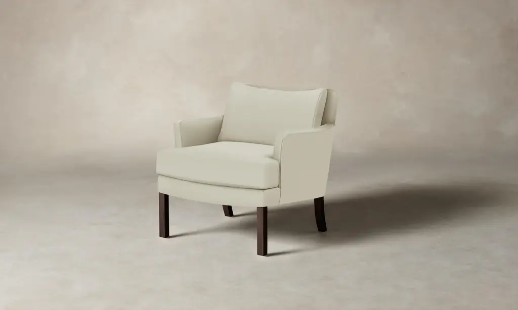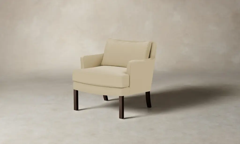 The Kaye Chair pays homage to mid-century Danish design with its simple form. Gently curved along the back and arms, it envelops the body in masterful upholstery and generous cushioning. Slender white oak legs lend the design a classic appeal. Handcrafted in North Carolina.
