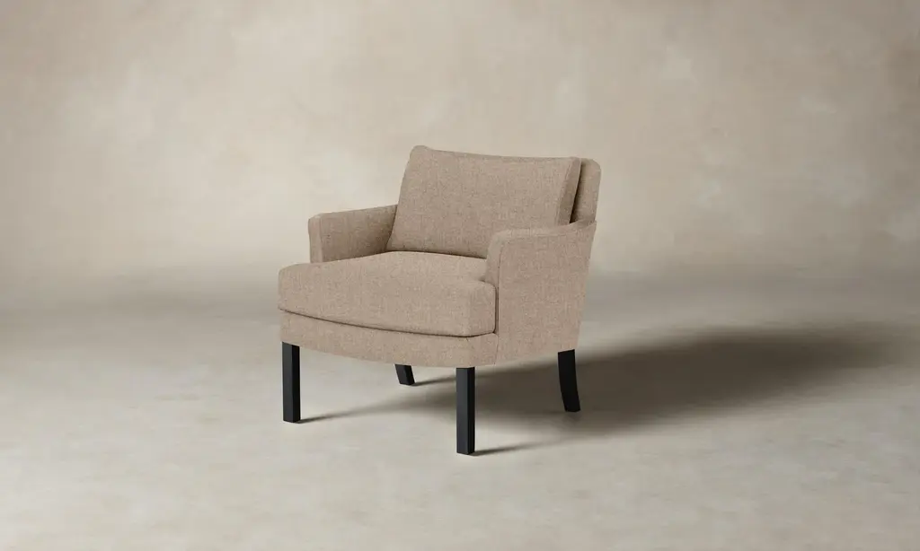 The Kaye Chair pays homage to mid-century Danish design with its simple form. Gently curved along the back and arms, it envelops the body in masterful upholstery and generous cushioning. Slender white oak legs lend the design a classic appeal. Handcrafted in North Carolina.