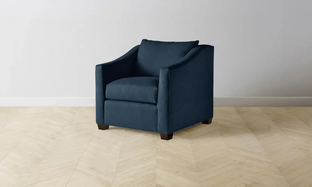 The Kaye Chair - Performance Velvet Sapphire - Chocolate Oak