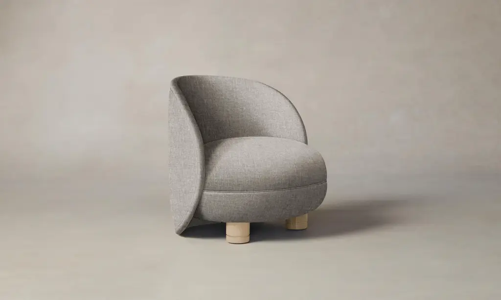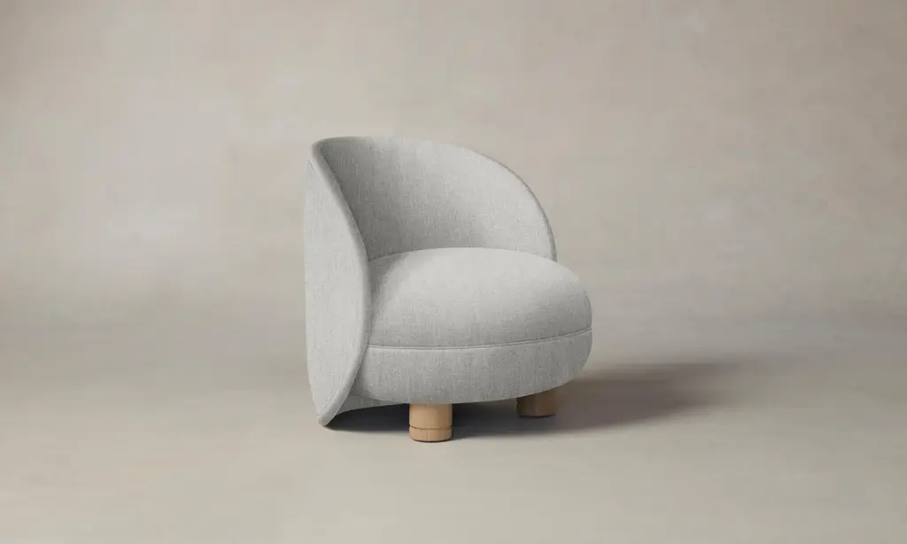 The Laight reimagines the classic slipper chair with a new sense of softness and whimsy. It has a curved, wraparound back and voluminous seat that sits atop lathe-turned legs. Handcrafted in North Carolina.