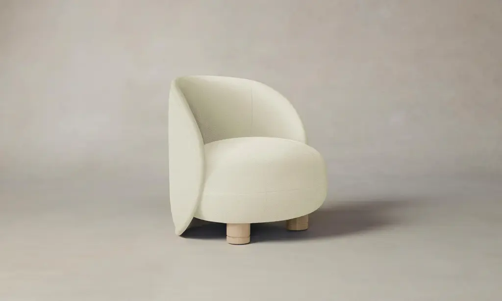 The Laight reimagines the classic slipper chair with a new sense of softness and whimsy. It has a curved, wraparound back and voluminous seat that sits atop lathe-turned legs. Handcrafted in North Carolina.