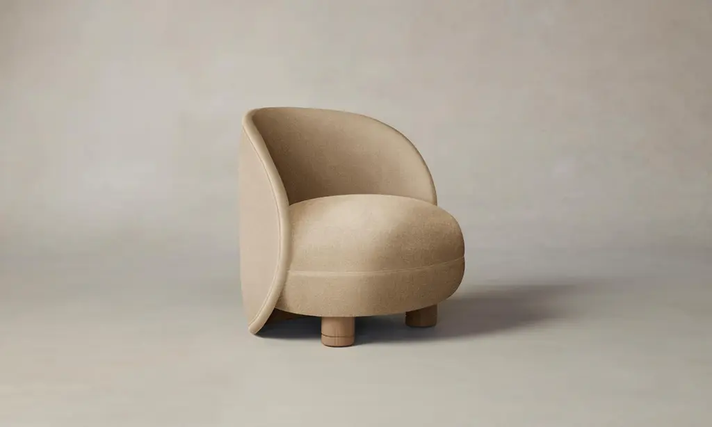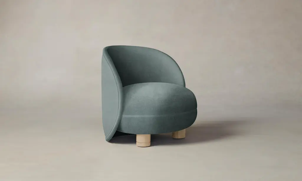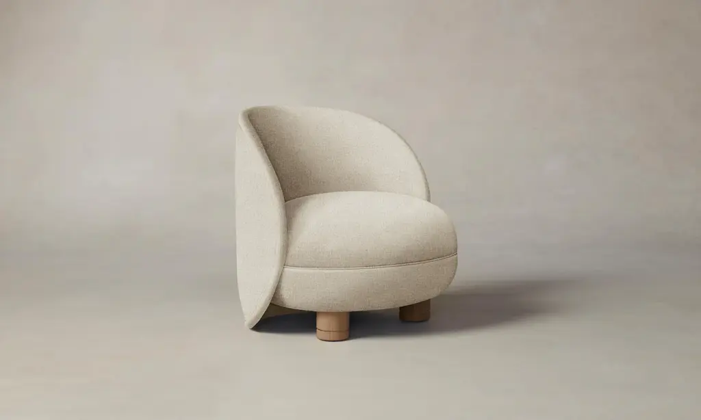 The Laight reimagines the classic slipper chair with a new sense of softness and whimsy. It has a curved, wraparound back and voluminous seat that sits atop lathe-turned legs. Handcrafted in North Carolina.