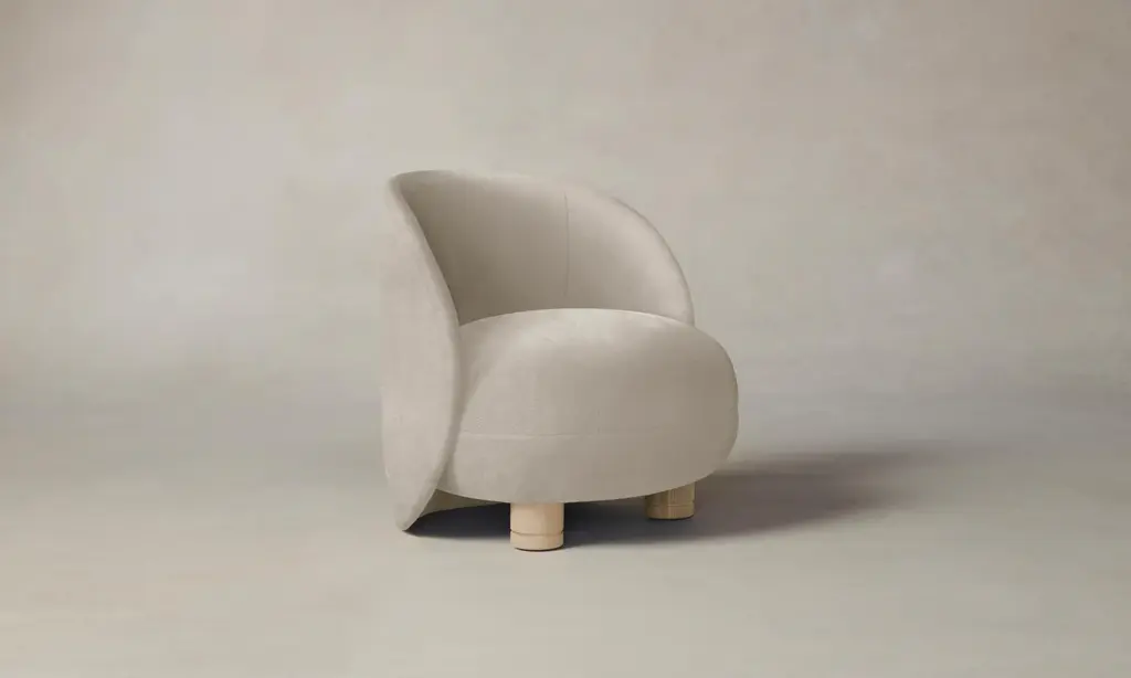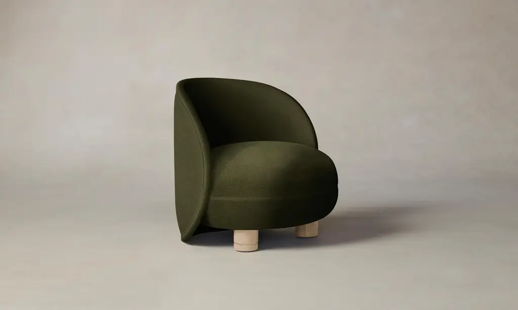 The Laight reimagines the classic slipper chair with a new sense of softness and whimsy. It has a curved, wraparound back and voluminous seat that sits atop lathe-turned legs. Handcrafted in North Carolina.
