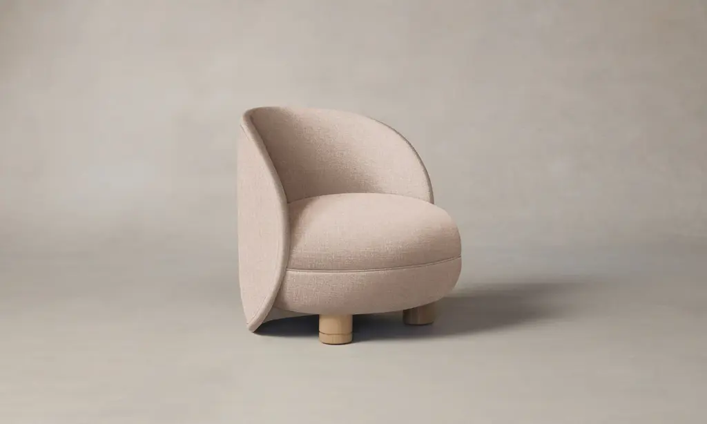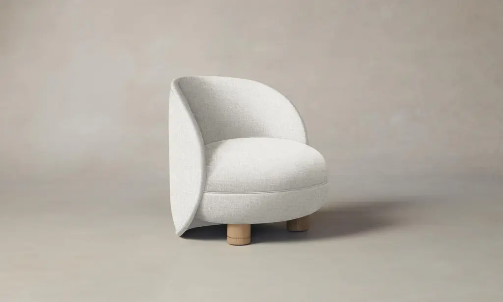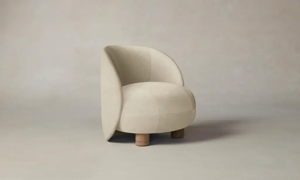 The Laight reimagines the classic slipper chair with a new sense of softness and whimsy. It has a curved, wraparound back and voluminous seat that sits atop lathe-turned legs. Handcrafted in North Carolina.