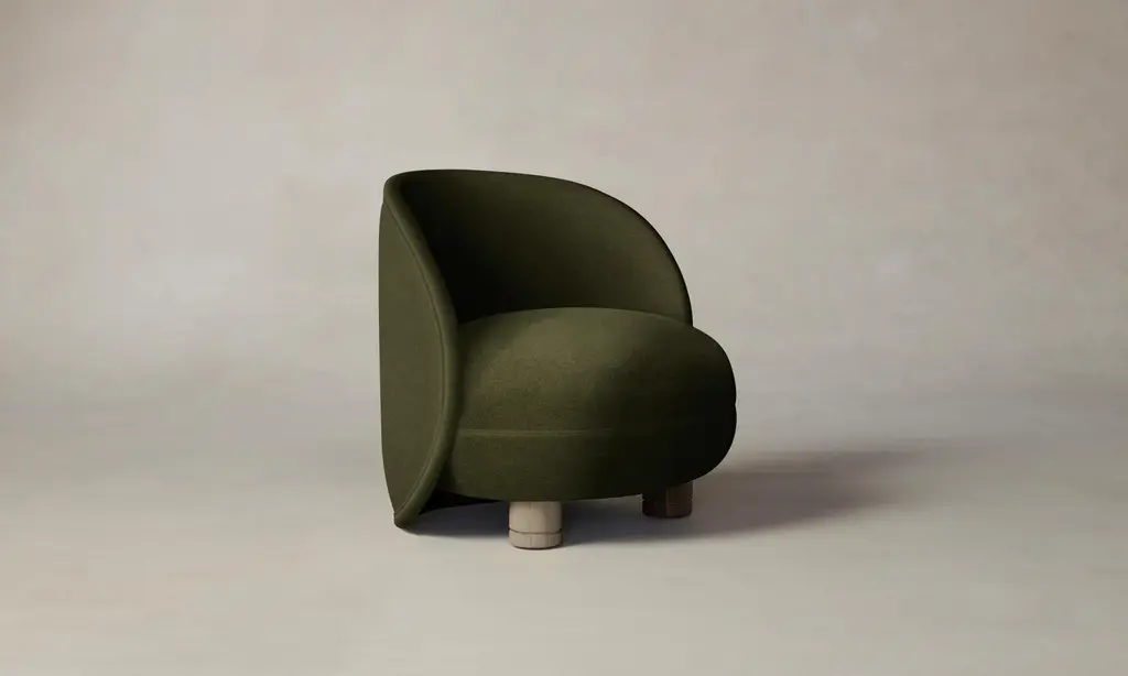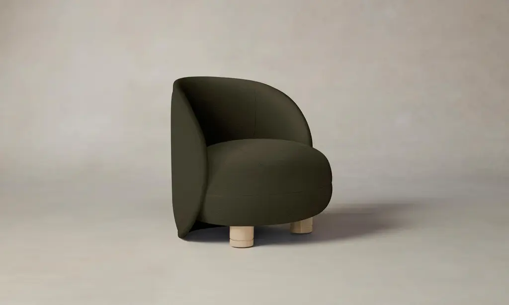 The Laight reimagines the classic slipper chair with a new sense of softness and whimsy. It has a curved, wraparound back and voluminous seat that sits atop lathe-turned legs. Handcrafted in North Carolina.