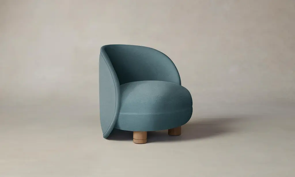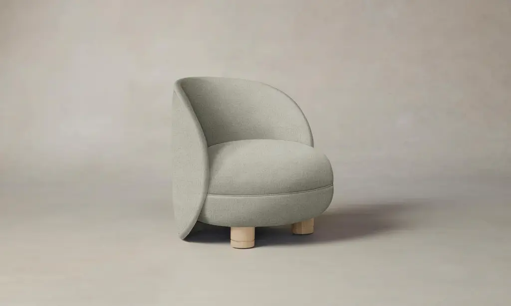 The Laight reimagines the classic slipper chair with a new sense of softness and whimsy. It has a curved, wraparound back and voluminous seat that sits atop lathe-turned legs. Handcrafted in North Carolina.