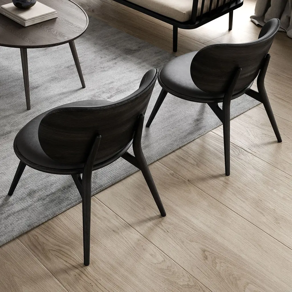 The Lounge Chair builds on The Dining Chair's and High Stool's beautifully fluid, sculptural and archetypal character. The backrest and seat are larger and generously rounded for a heightened sense of comfort. The seat and backrest are upholstered in a soft, durable leather from Sorensen Leather and is fully supportive and comfortable so that it outweighs the need for armrests. The collection is available in solid oak or beech wood in black stained lacquered, sirka grey or natural matt lacquered oak. The wood is sustainably sourced from well-managed forests to support the UN Sustainable Development Goals of protecting “Life on Landâ€� (SDGs 15), “Responsible Consumption and Productionâ€� (SDGs 12) and “Partnership for the Goalsâ€� (SDGs 17).