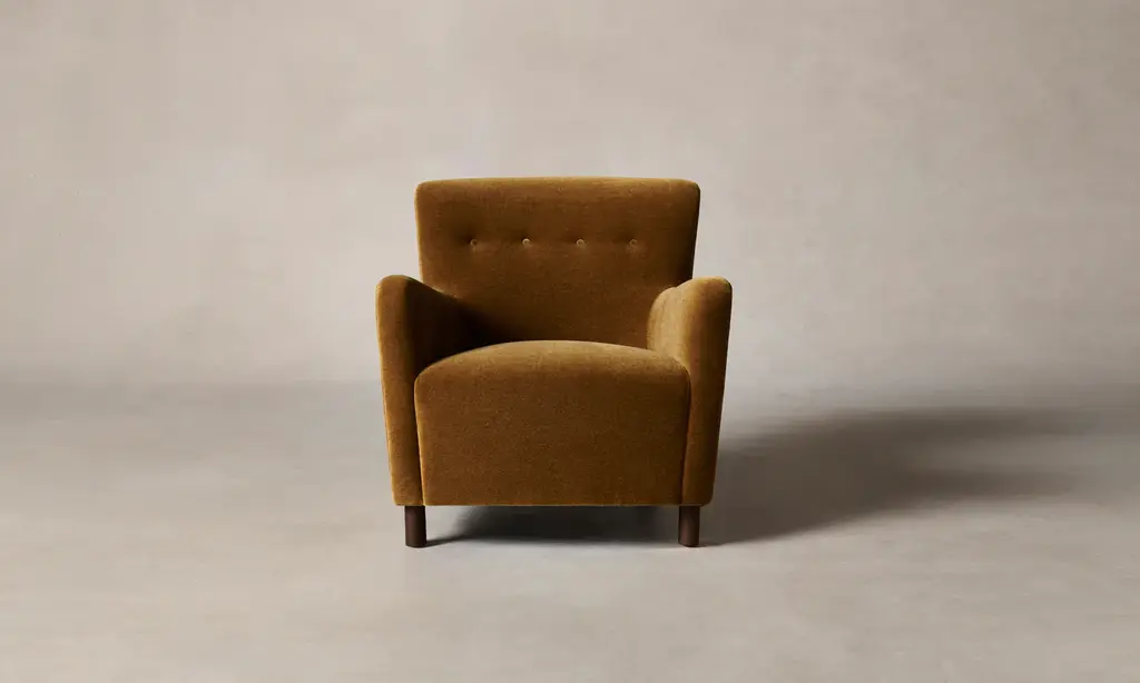 The Perry Chair carries mid-century Scandinavian design influences into the home with its sinuous silhouette and button-tufted details. Tight upholstery and blind seams lend the design a smooth finish. Handcrafted in North Carolina.