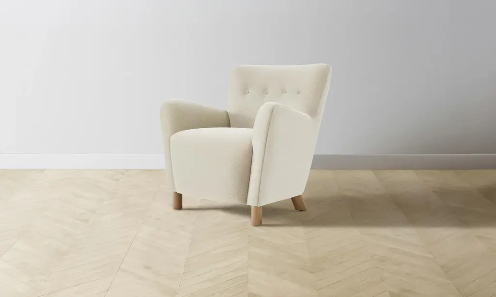 The Perry Chair carries mid-century Scandinavian design influences into the home with its sinuous silhouette and button-tufted details. Tight upholstery and blind seams lend the design a smooth finish. Handcrafted in North Carolina.
