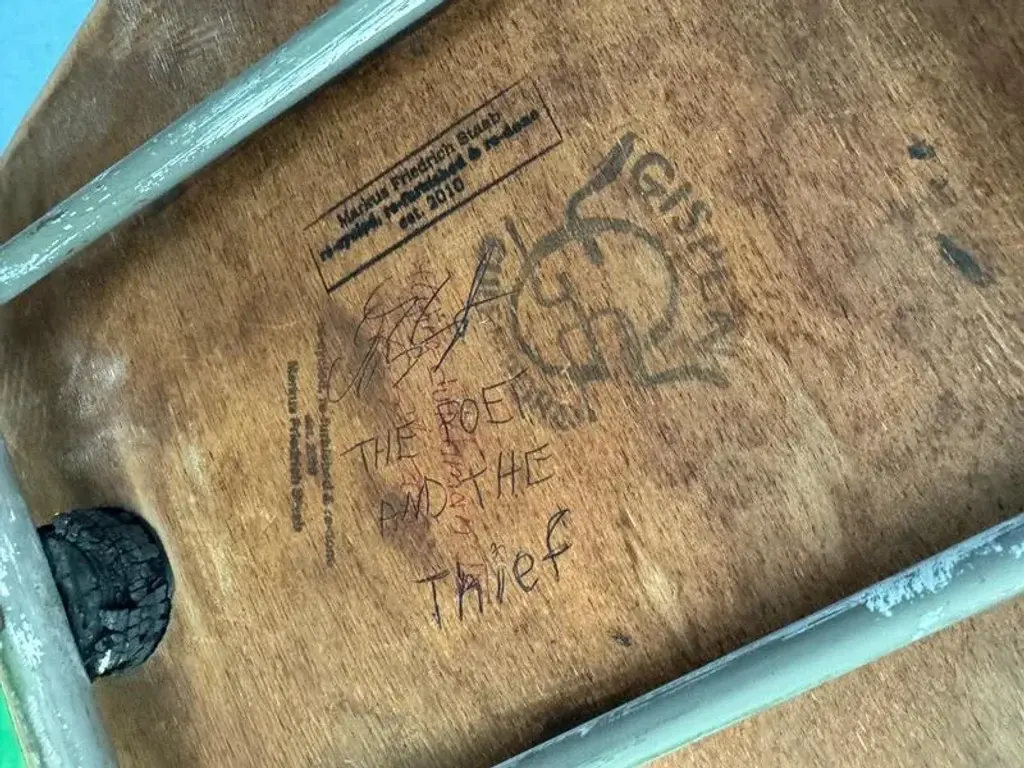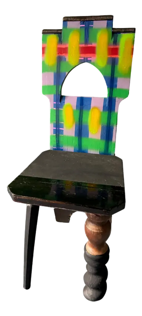 The poet and the thief chair by markus friedrich staab one of a kind dimensions: d 46 x w 47 x h 75 cm. Materials: wood, lacquer, paint. Wim rietveld classic chair contemporized, painted, de-constructed, and multi-lacquered. Markus friedrich staab furniture has always surrounded us. this piece is attributed to the mentioned designer/maker. It has no attribution mark and no official proof of authenticity, however it is well documented in design history. I take full responsibility for any authenticity issues arising from misattribution