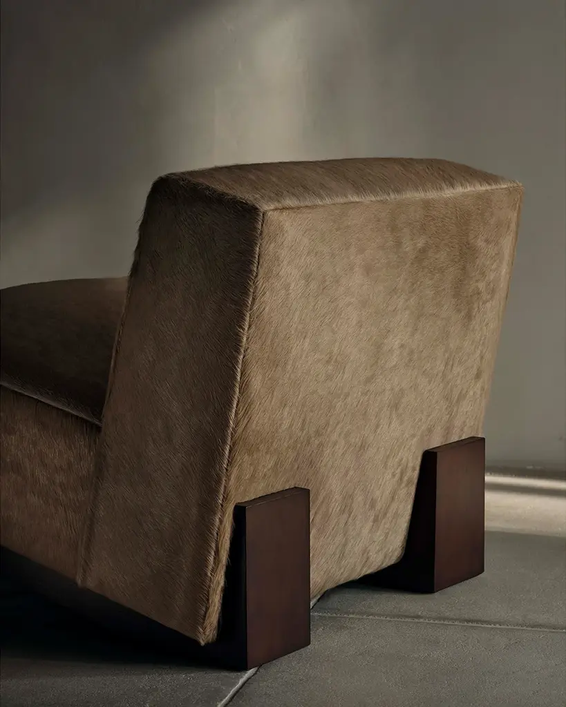 The Remsen Chair’s bold proportions and streamlined silhouette are informed by Art Moderne design. It has a low-slung seat that sits at an angle atop a sculptural white oak base. Handcrafted in North Carolina.