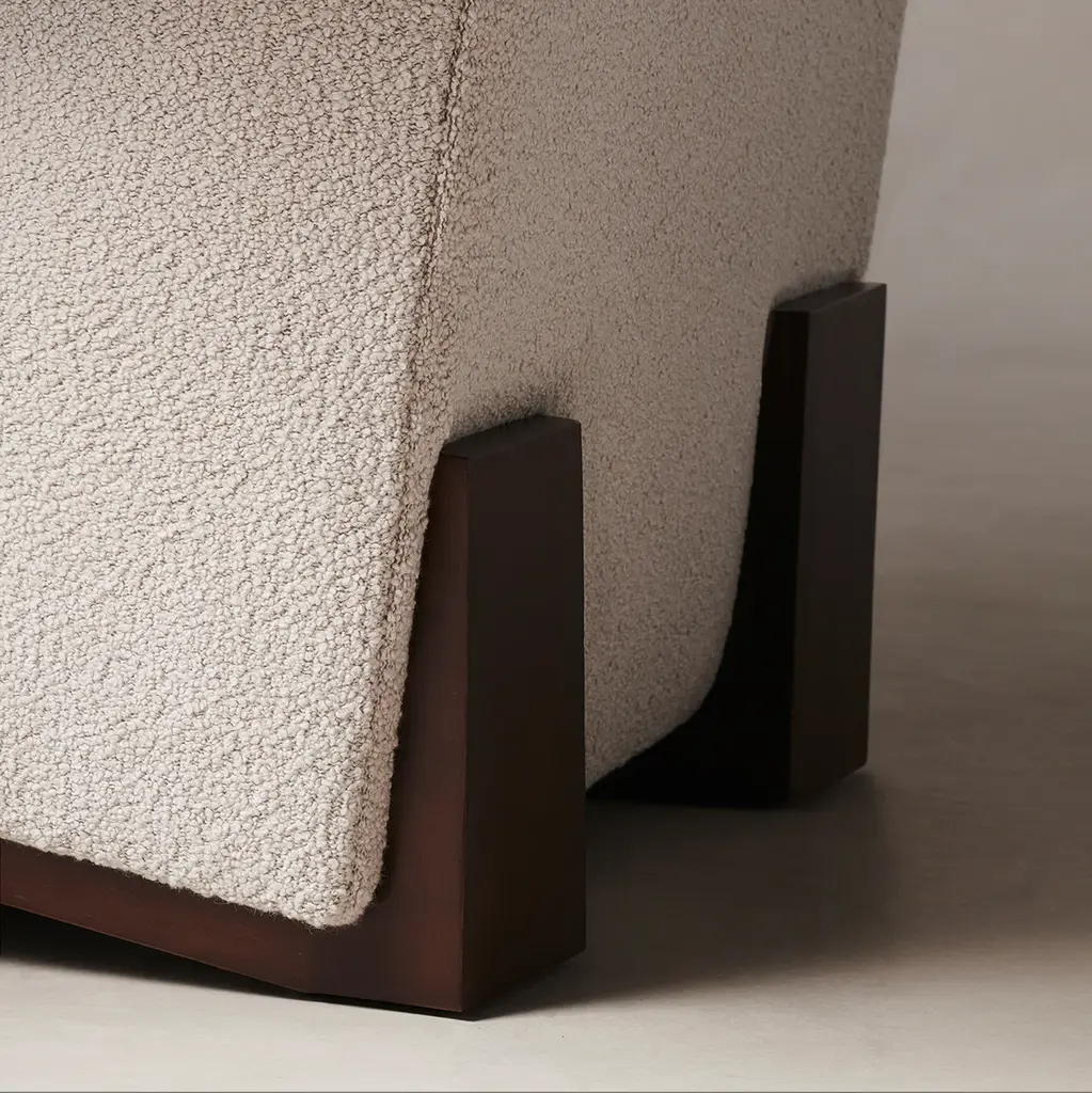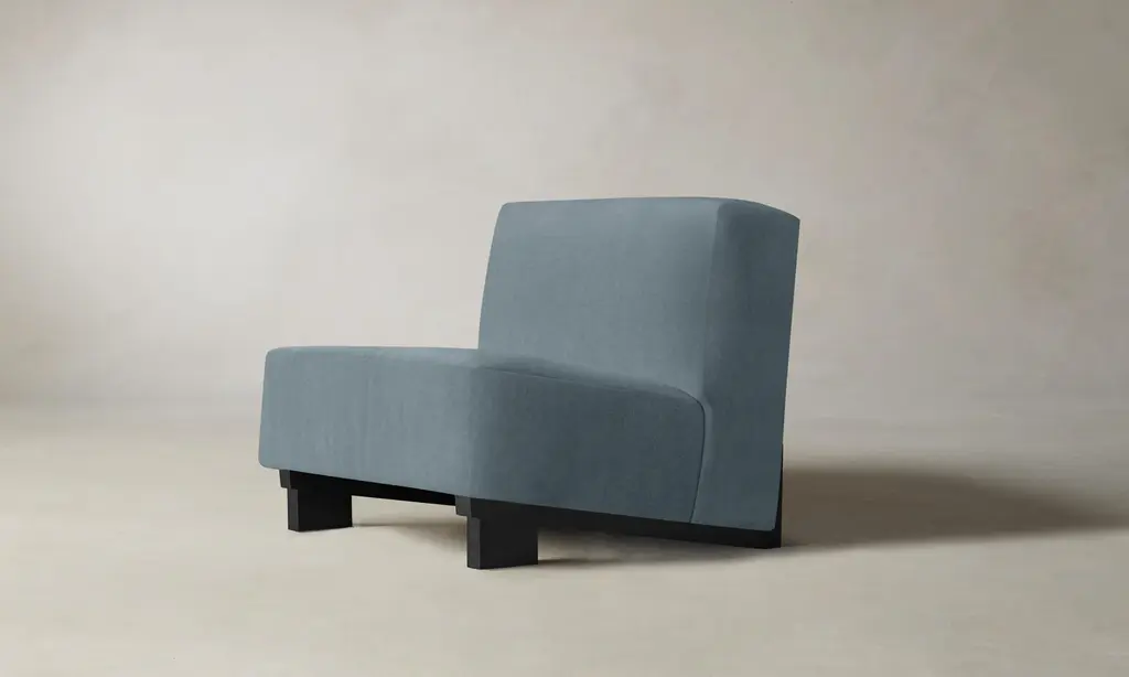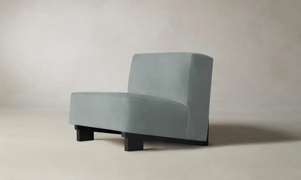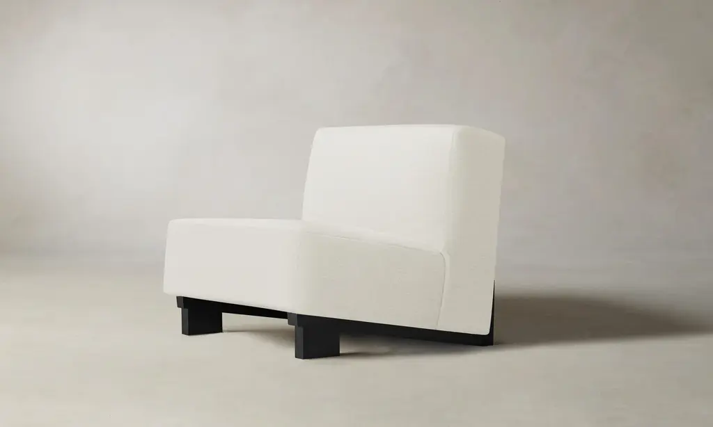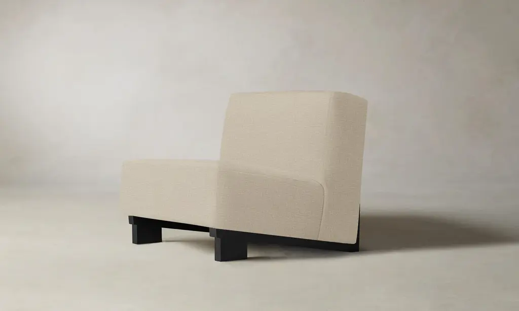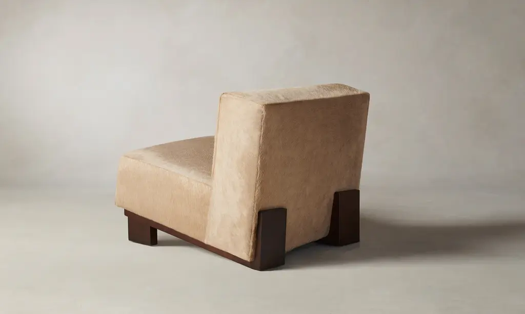 The Remsen Chair’s bold proportions and streamlined silhouette are informed by Art Moderne design. It has a low-slung seat that sits at an angle atop a sculptural white oak base. Handcrafted in North Carolina.