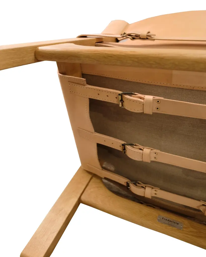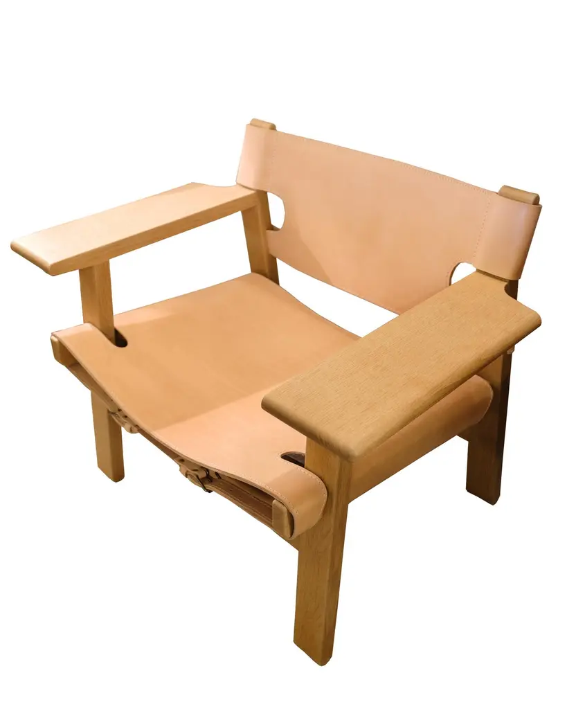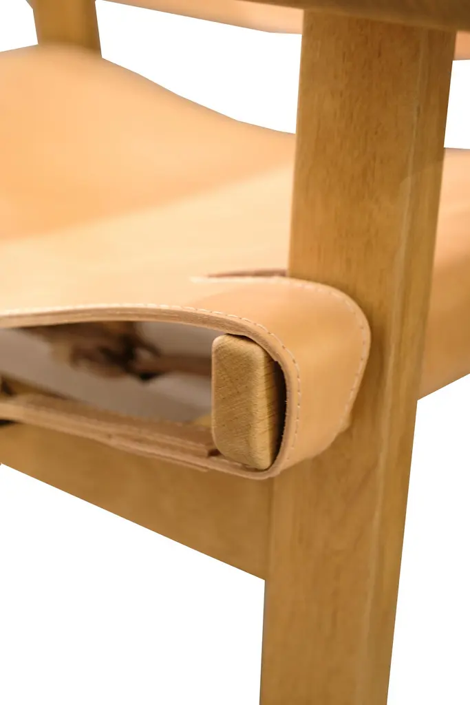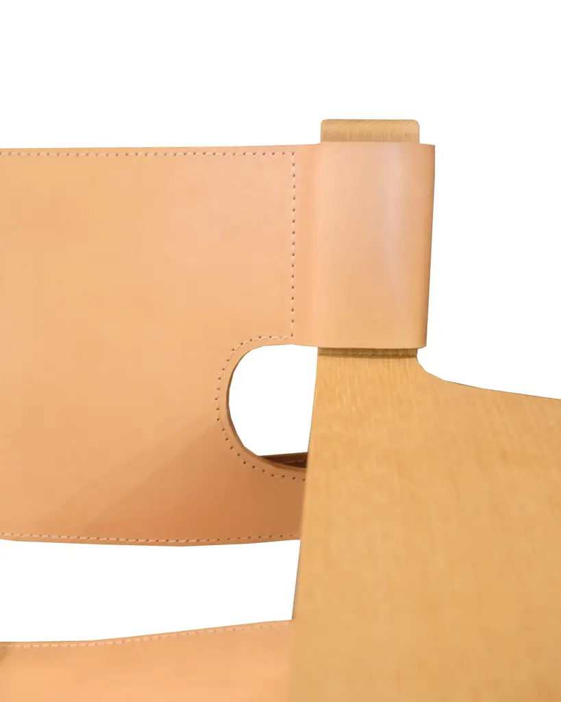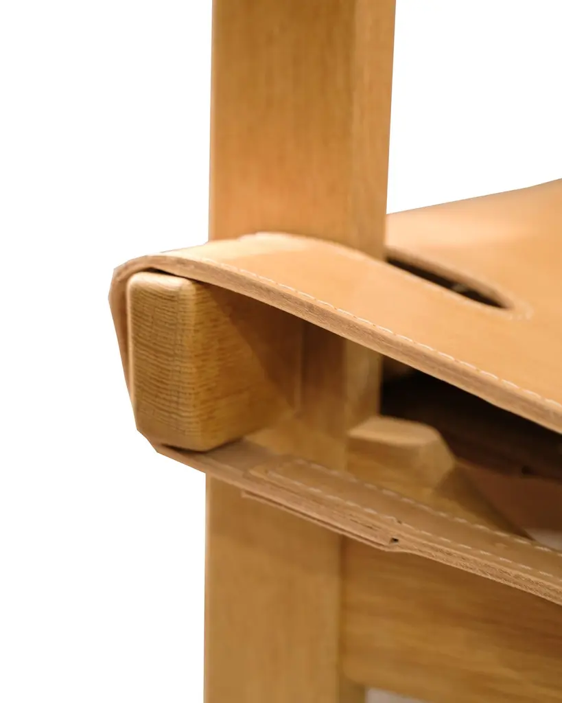 The Spanich Chair Model Bm2226 Made In Oak & Paninated Vegetal Natural Leather