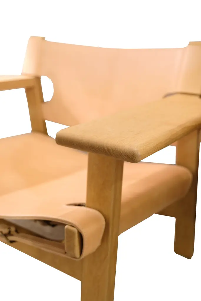 The armchair, Model BM2226, was designed by Børge Mogensen in 1958. The chair has a seat surface and backrest of the highest quality natural leather and the woodwork is made of oak. The name of the chair is the Spanish chair and, as the name suggests, Børge Mogensen was inspired by his many trips to southern Europe Spain when he designed this beautiful and comfortable chair.Measurements in cm: H:67.5 W:82 D:55 SH: 32.5