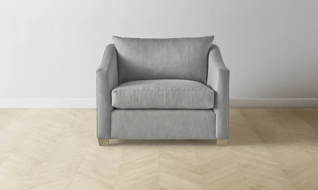 At once contemporary and classic, the Sullivan Chair-and-a-Half is a timeless addition to the home. It has a deep seat framed by sloped shelter arms and sits atop trapezoidal legs for a bold touch. Handcrafted in North Carolina.