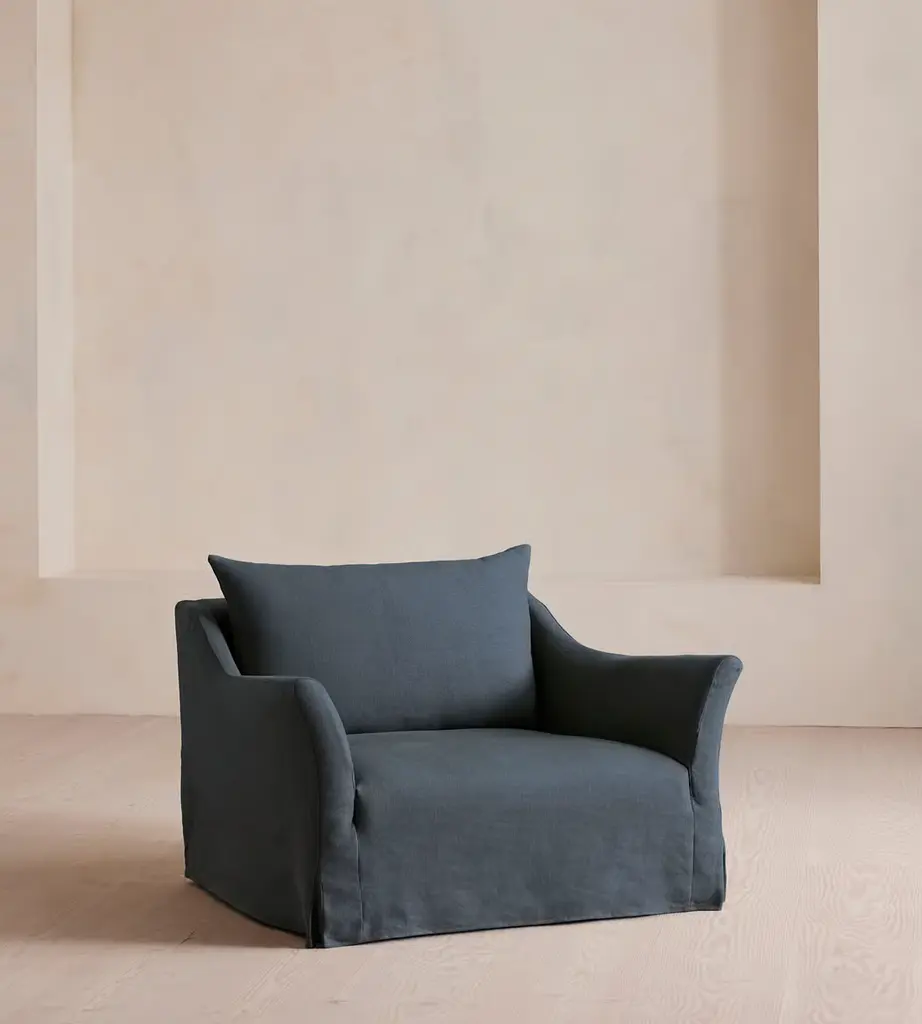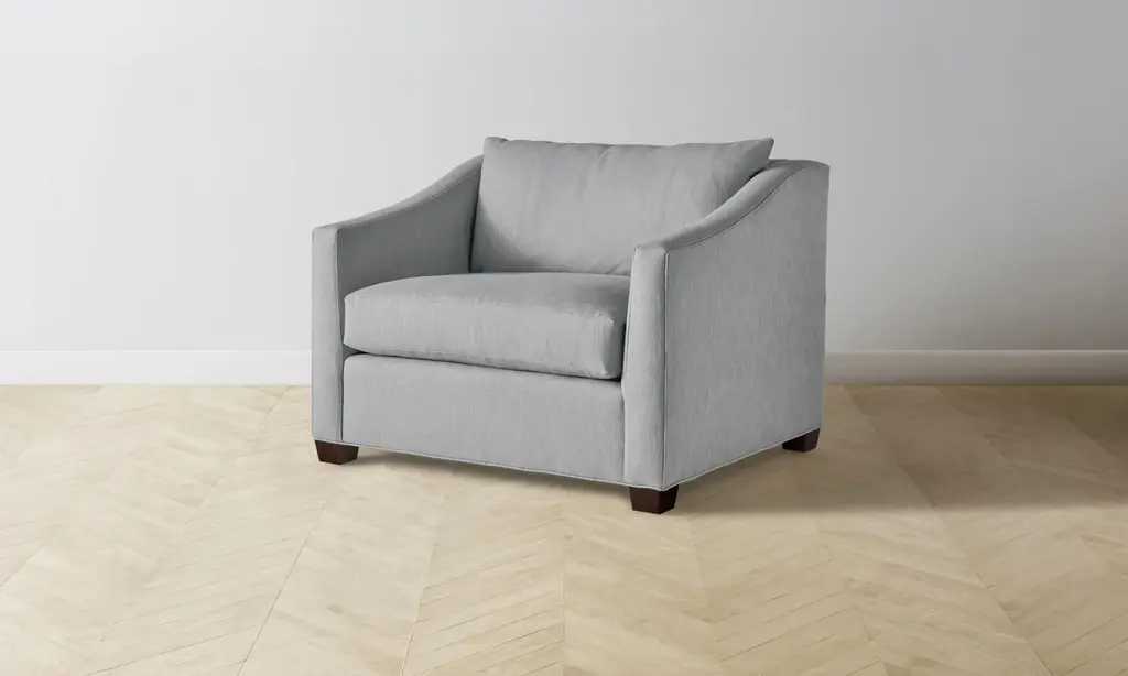 At once contemporary and classic, the Sullivan Chair-and-a-Half is a timeless addition to the home. It has a deep seat framed by sloped shelter arms and sits atop trapezoidal legs for a bold touch. Handcrafted in North Carolina.