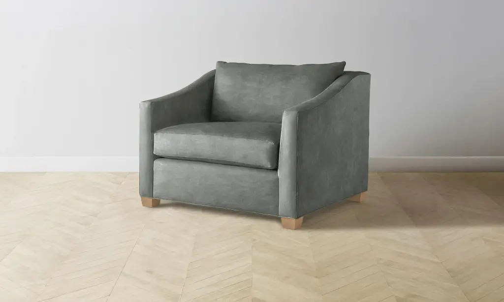 The Sullivan Chair-And-A-Half - Mohair Fog - Coffee Maple