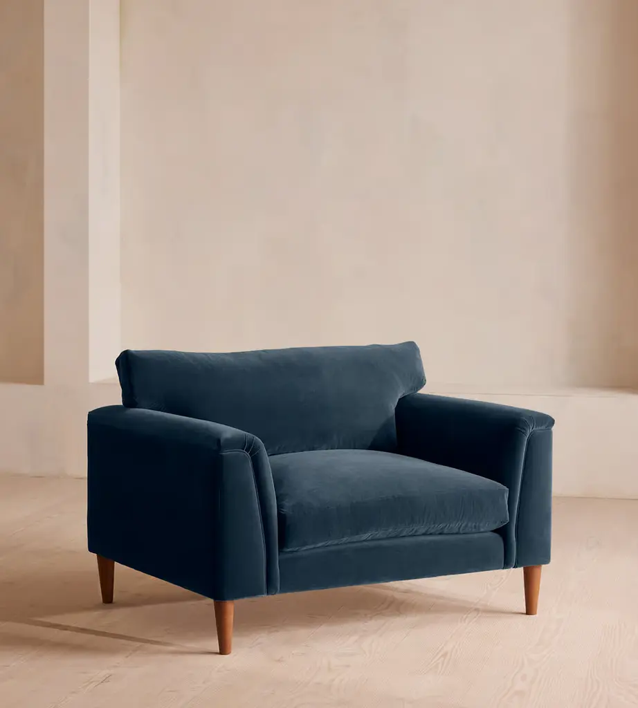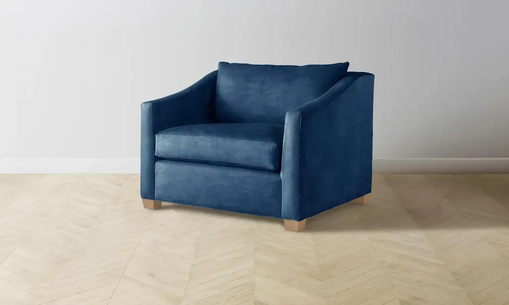 At once contemporary and classic, the Sullivan Chair-and-a-Half is a timeless addition to the home. It has a deep seat framed by sloped shelter arms and sits atop trapezoidal legs for a bold touch. Handcrafted in North Carolina.