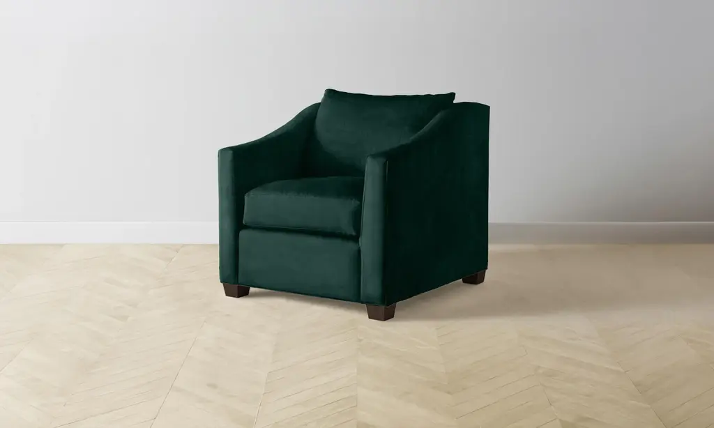 The Sullivan Chair-And-A-Half - Performance Velvet Emerald - Pecan Maple