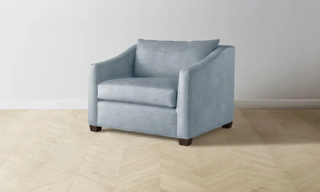 The Sullivan Chair-And-A-Half - Performance Velvet Sky - Pecan Maple