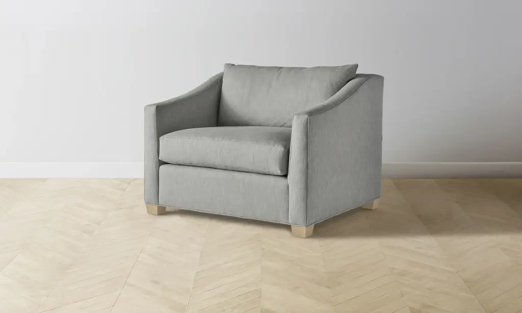 At once contemporary and classic, the Sullivan Chair-and-a-Half is a timeless addition to the home. It has a deep seat framed by sloped shelter arms and sits atop trapezoidal legs for a bold touch. Handcrafted in North Carolina.