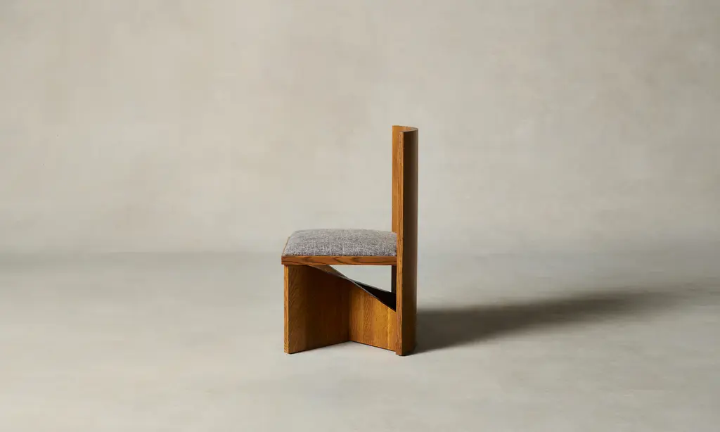 The Venice Chair is a study in contrasts. The softness of its curved back and upholstered seat is balanced by its angular base, where a void welcomes conversation between light and shadow. Handcrafted at a family-owned workroom in upstate New York.