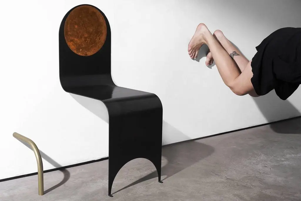 Thin Chair In Contemporary Blackened Steel And Oxidized Steel