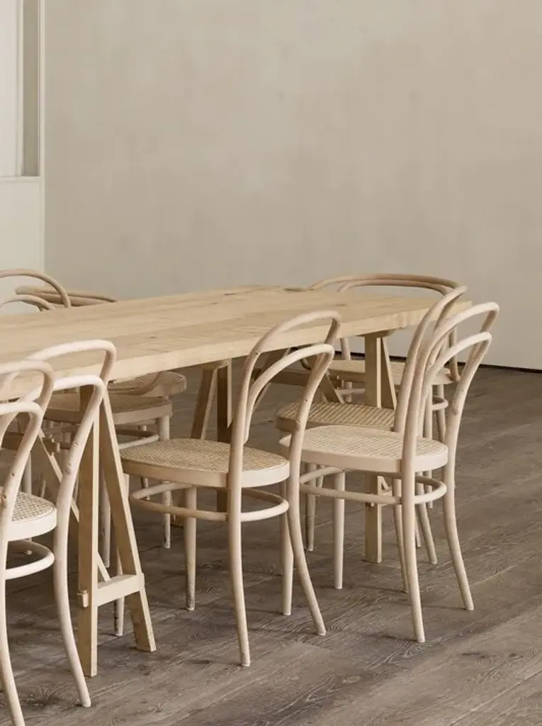 The famous coffee house chair is an icon and considered the most successful mass produced product in the world to date: it initiated the history of modern furniture. The basis was a new technique – the bending of solid wood – that Michael Thonet developed and perfected during the 1850s, and it was the first time serial furniture production was possible. Added was an ingenious distribution model: 36 disassembled chairs could be packed into a one cubic metre box, shipped throughout the world, and then assembled on site. With its clear, reduced aesthetics this classic has been placed in the most diverse environments for more than 150 years. It is produced in our Frankenberg facility.Stained ash wood with natural lacquer. Seat in rattan cane with addition of supporting synthetic net - Plastic feetProduct exhibited at Archiproducts Bari showroom - Corso V. Emanuele II, 189 BariThe product may have small imperfections due to exposure.