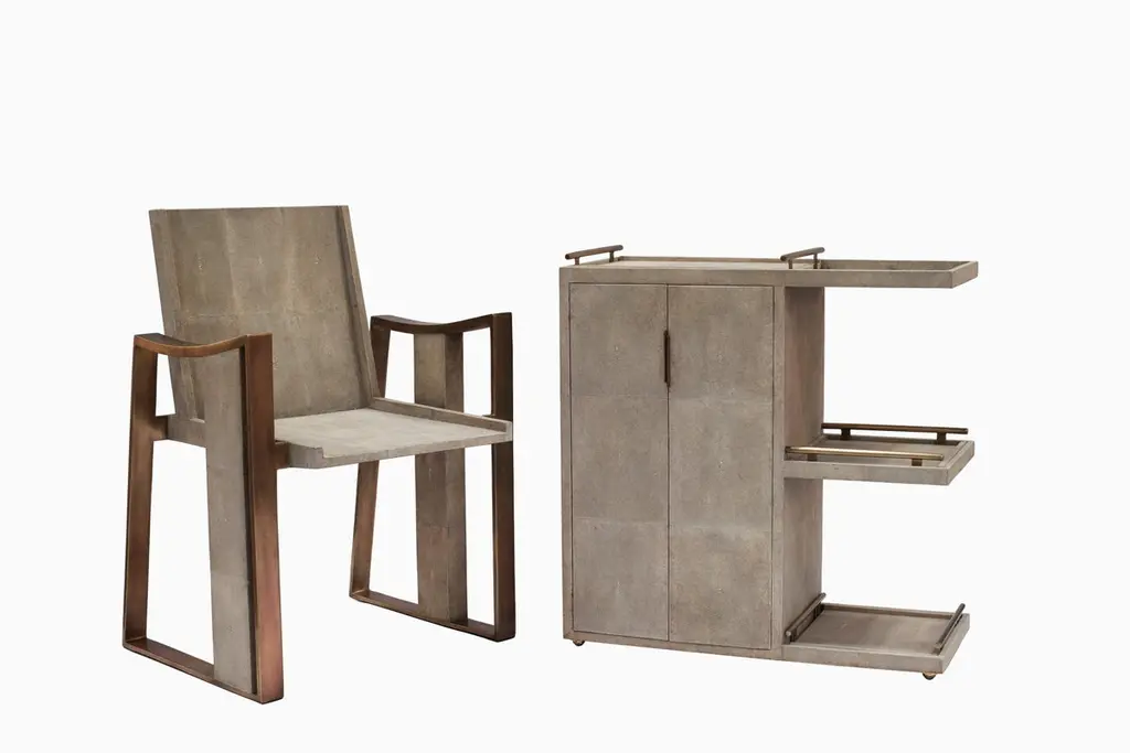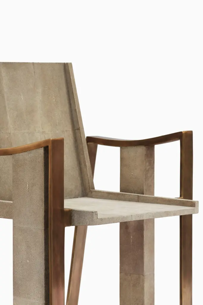 Thor Chair In Cream Shagreen And Bronze-Patina Brass Details By Kifu, Paris