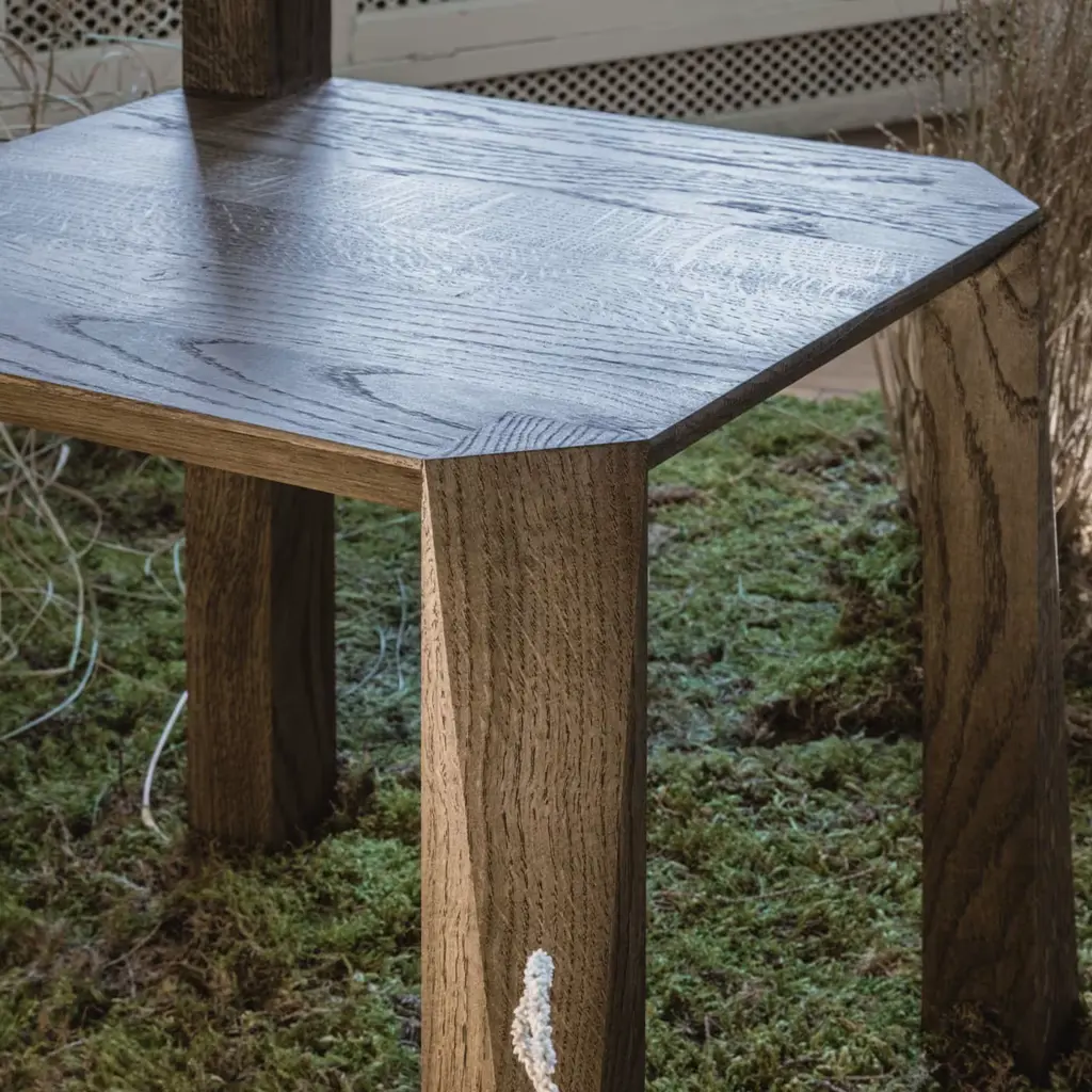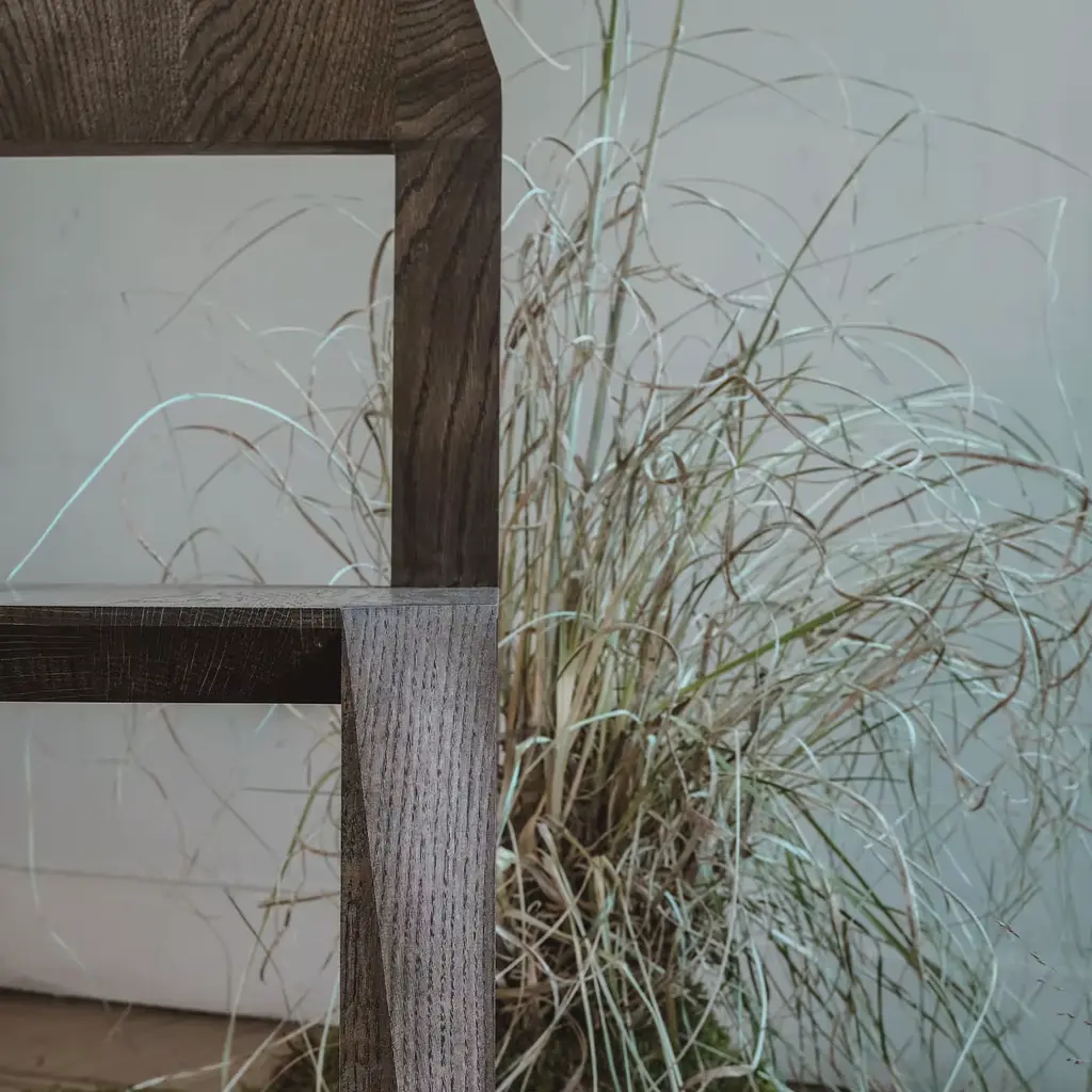 The solid wood blocks have been taken and slowly cut and sharpened into a conglomerate of edges and facets. This continuous process of subtracting material has many benefits. First it lightens the overall geometry and second it creates the necessary angles to make the chair functional. In fact despite the sculptural look of the chair, all its angles are studied to provide a comfortable seat position and practicality.