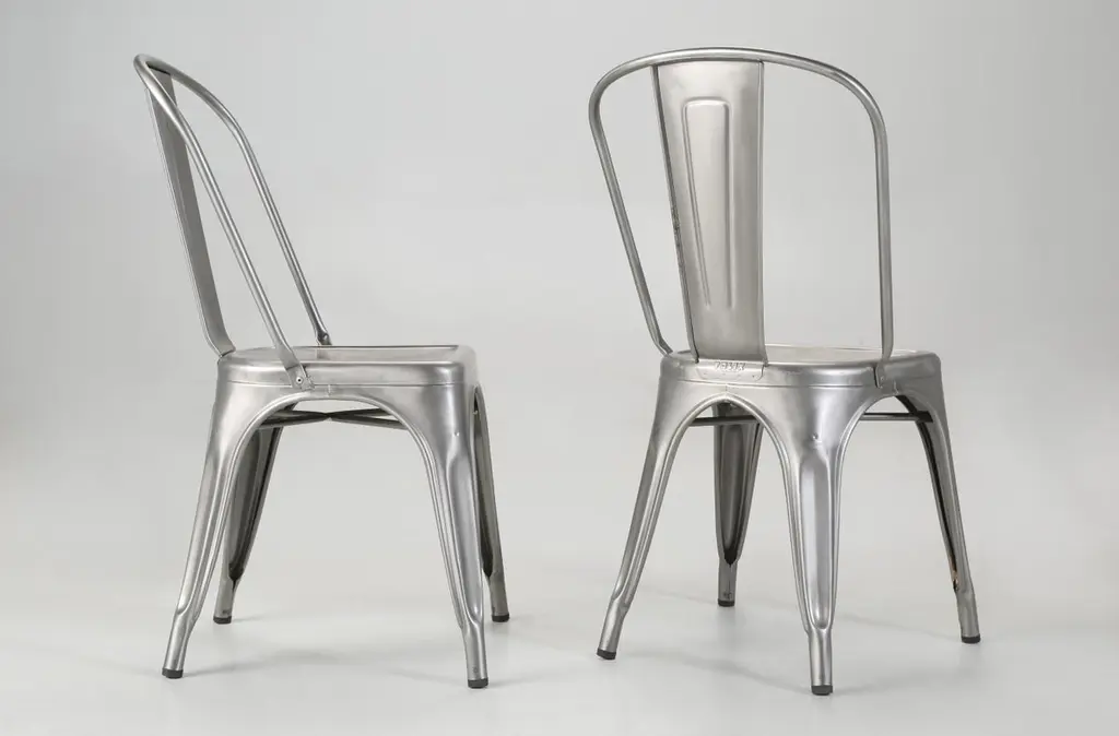 Tolix Pair Of Satin Grey Steel Stacking Chairs Made In France Hundreds Available